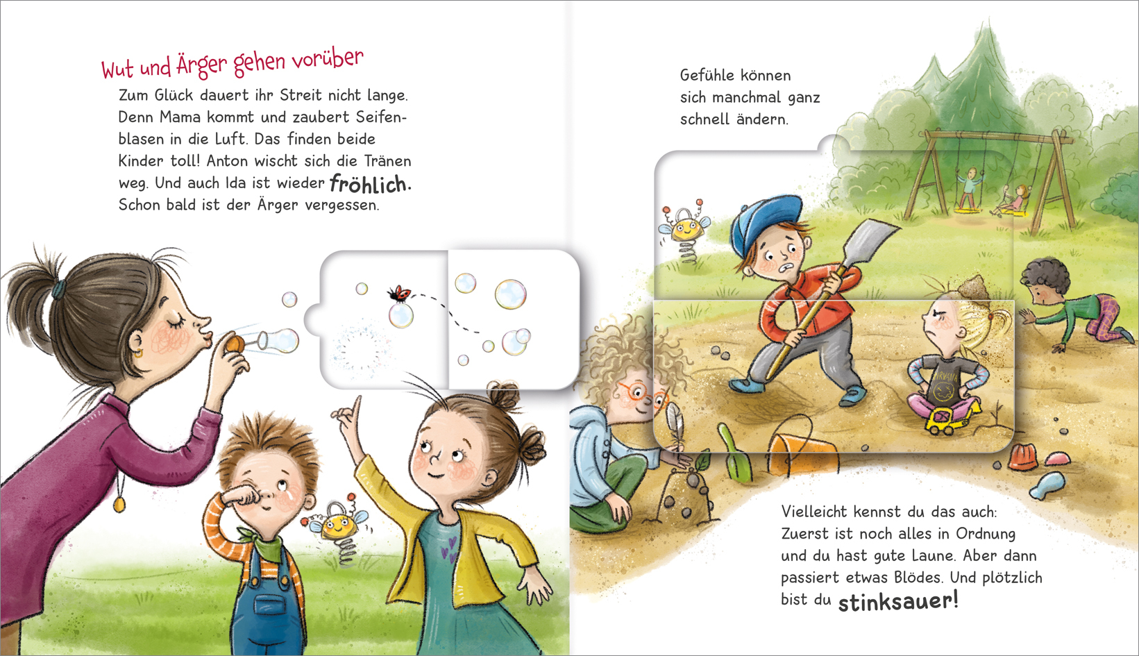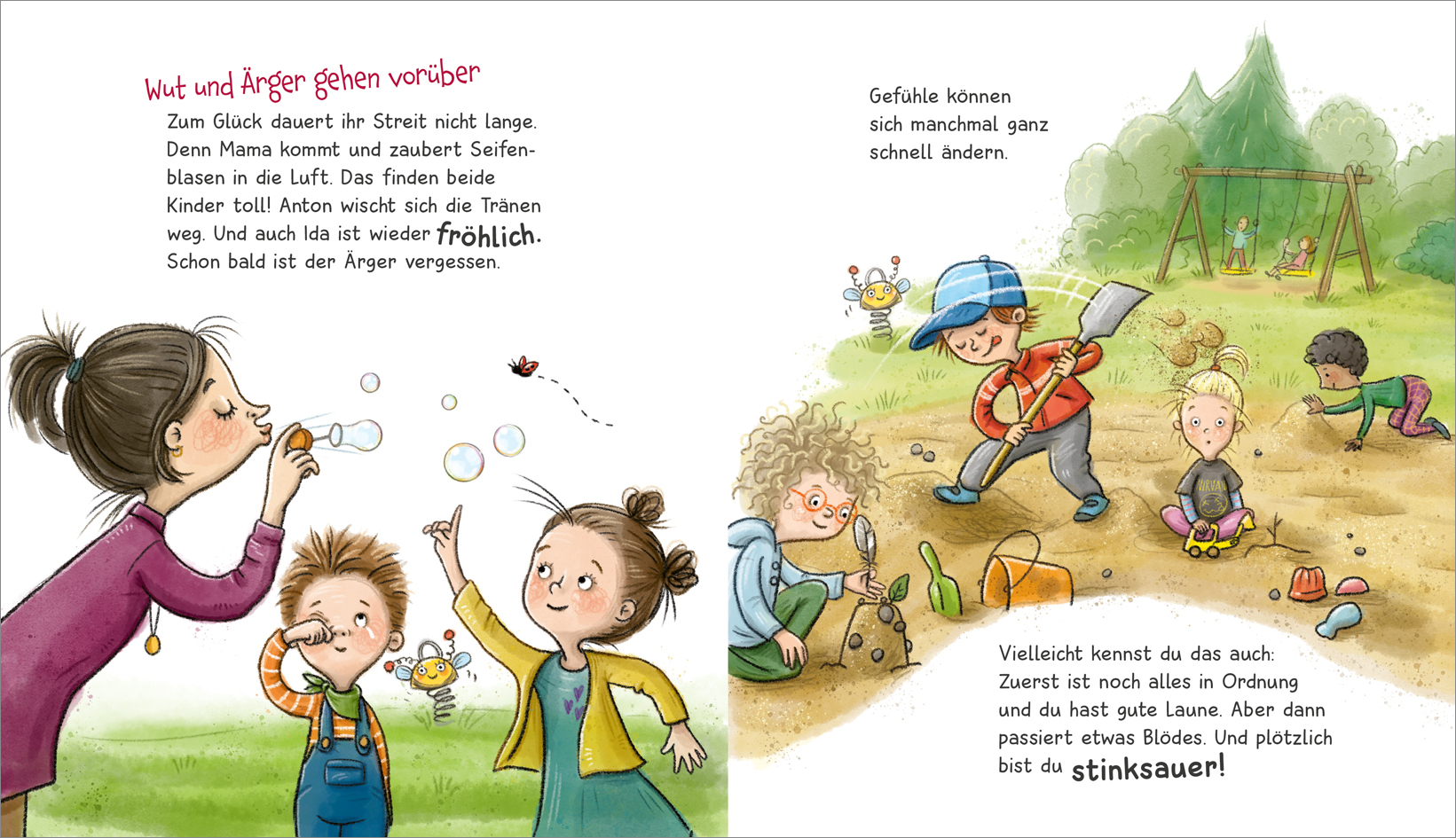 Ida und Anton freuen sich sehr: Mama geht mit ihnen auf den Spielplatz! Dort herrscht allerdings nicht nur eitel Sonnenschein: Von superfroh bis stinkesauer erleben die beiden jede Menge unterschiedlicher Gefühle. Angst, Trauer, Wut: Emotionale, witzige Illust...