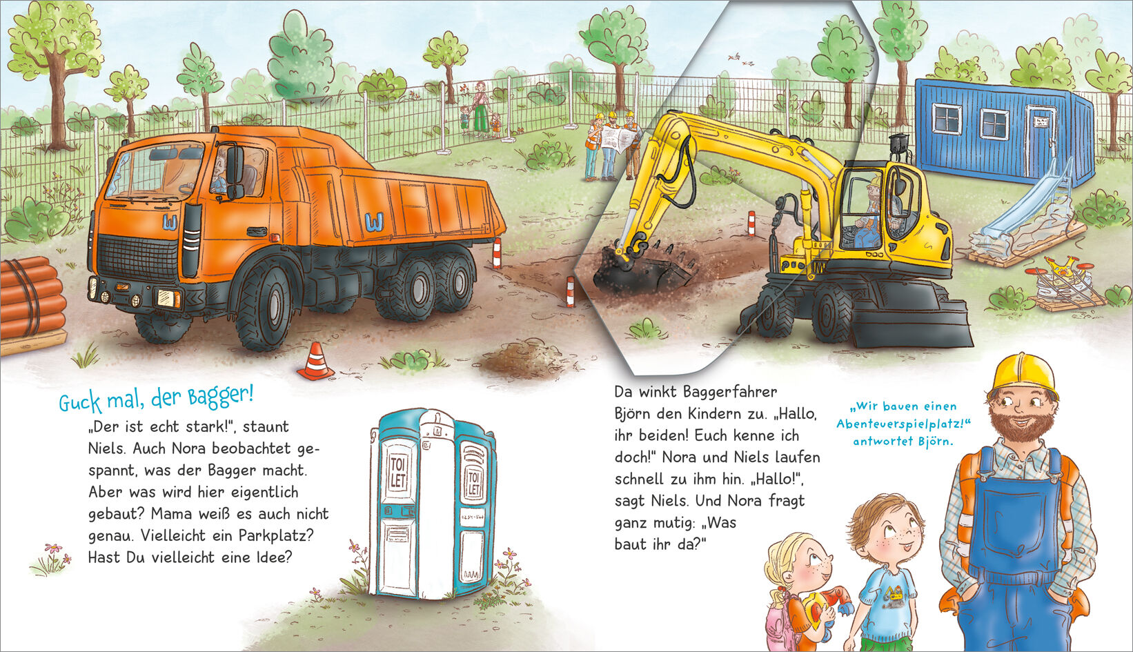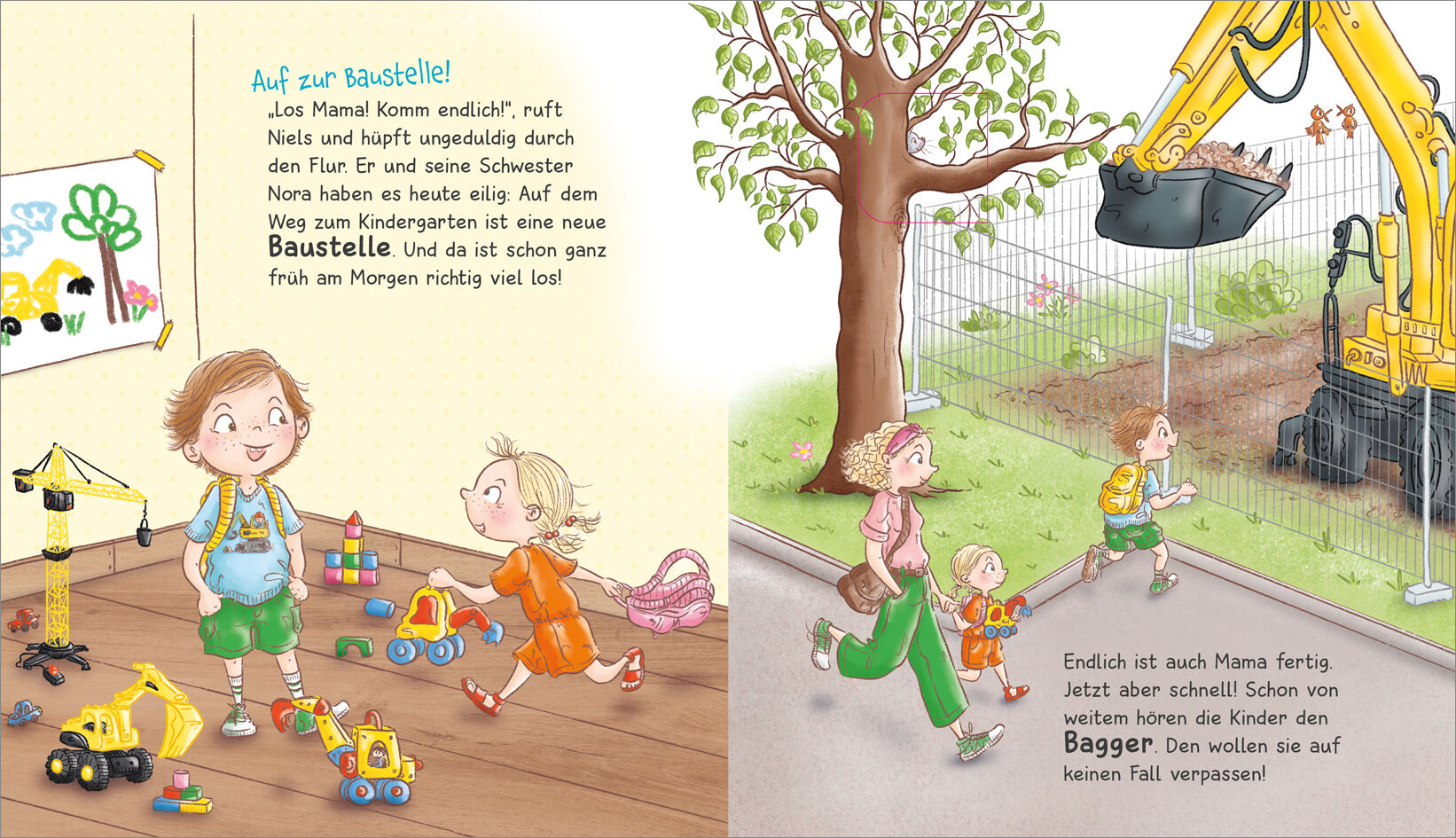 So schnell waren Niels und seine Schwester Nora noch nie fertig an der Tür. Die große Baustelle direkt neben dem Kindergarten weckt die Neugier der beiden. Kein Wunder also, dass die Geschwister so schnell wie möglich losgehen wollen. Dort angekommen, bestaune...