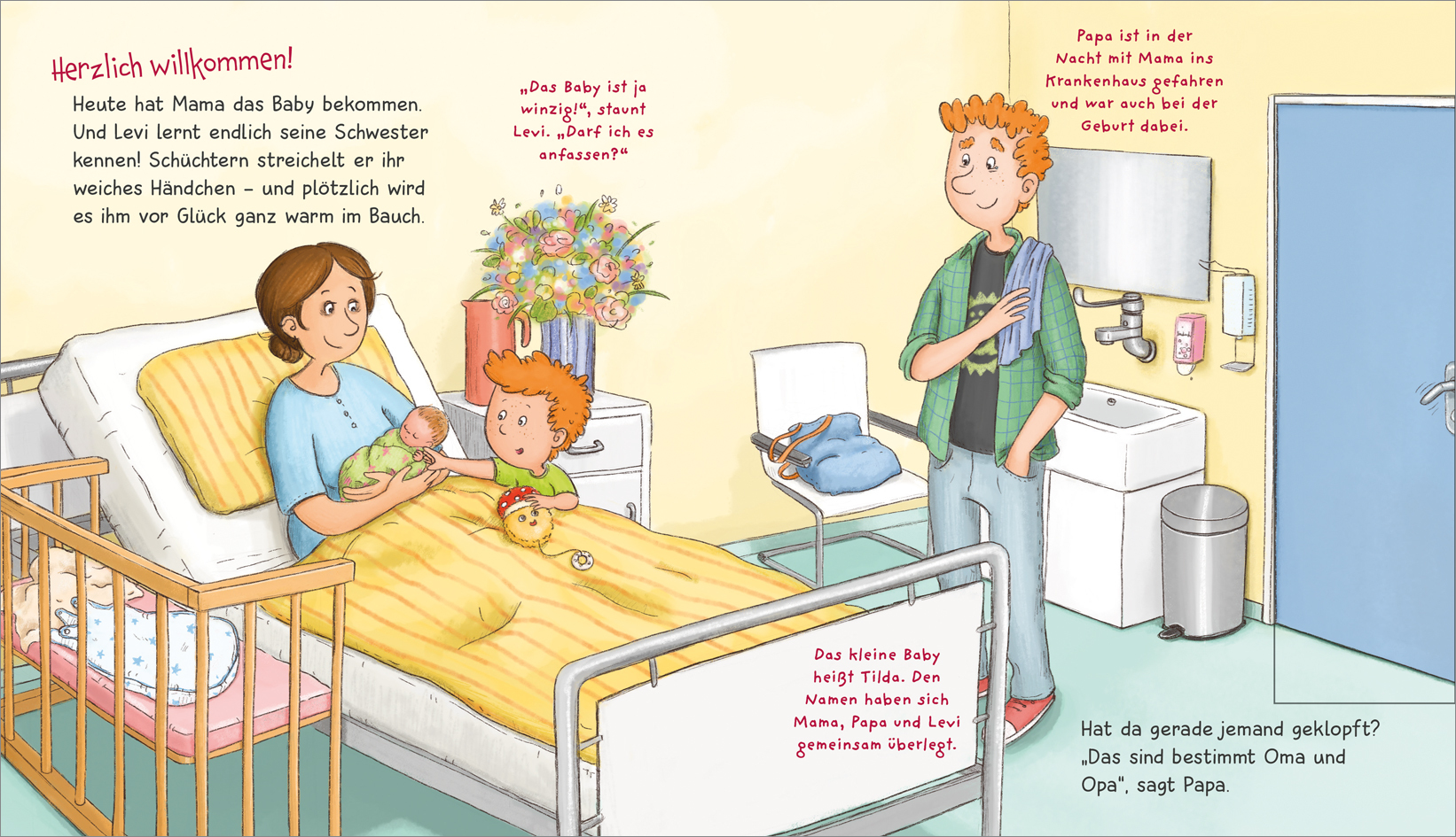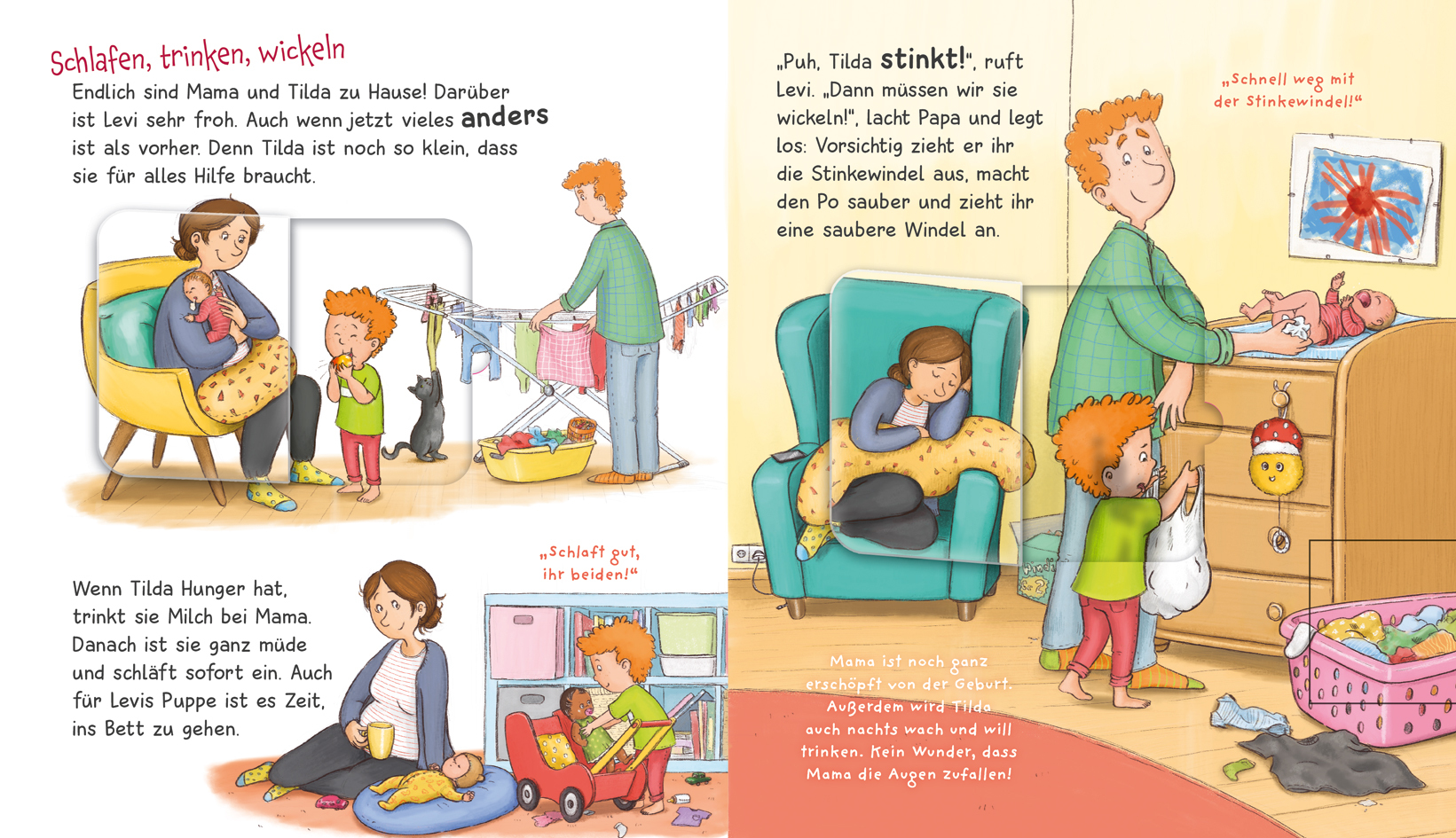 Endlich ist es soweit! Das lange Warten hat ein Ende und das neue Familienmitglied ist da! Jetzt sind sie zu viert - und Levi ist ein sehr stolzer großer Bruder! Das Baby muss gefüttert und gewickelt werden, und Levi kann helfen: Die stinkende Windel wirft er ...