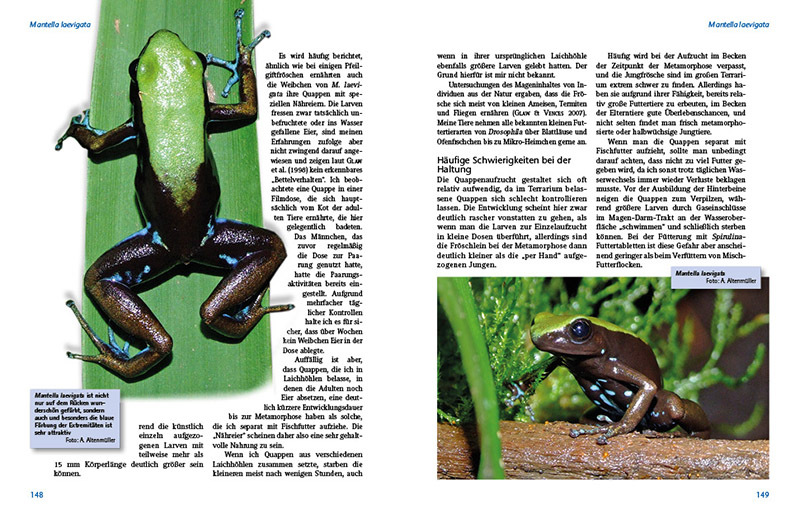 Die Madagaskar-Buntfrösche der Gattung Mantella gehören zu den farbenprächtigsten Amphibien überhaupt. Die kleinen, tagaktiven Frösche erfreuen sich seit jeher großer Beliebtheit in den Terrarien von Liebhabern. Wichtige Erkenntnisse über ihre Biologie wurden ...