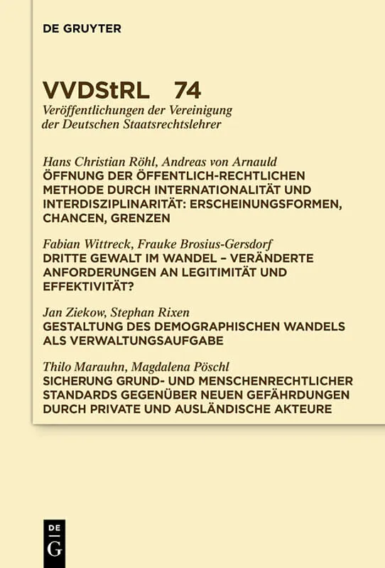Dieser Band enthält die Referate und Diskussionen auf der Tagung der Deutschen Staatsrechtslehrer inDüsseldorf vom 1. bis 4. Oktober 2014. Autorentext Hans Christian Röhl, Konstanz; Andreas von Arnauld, Kiel; Fabian Wittreck, Münster; Frauke Brosius-Gersdorf, ...