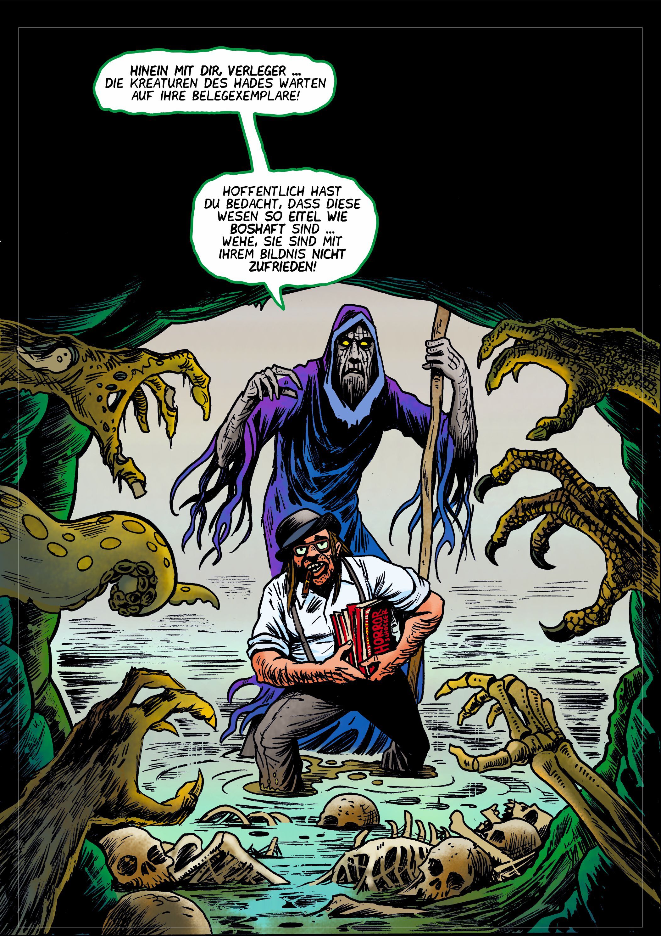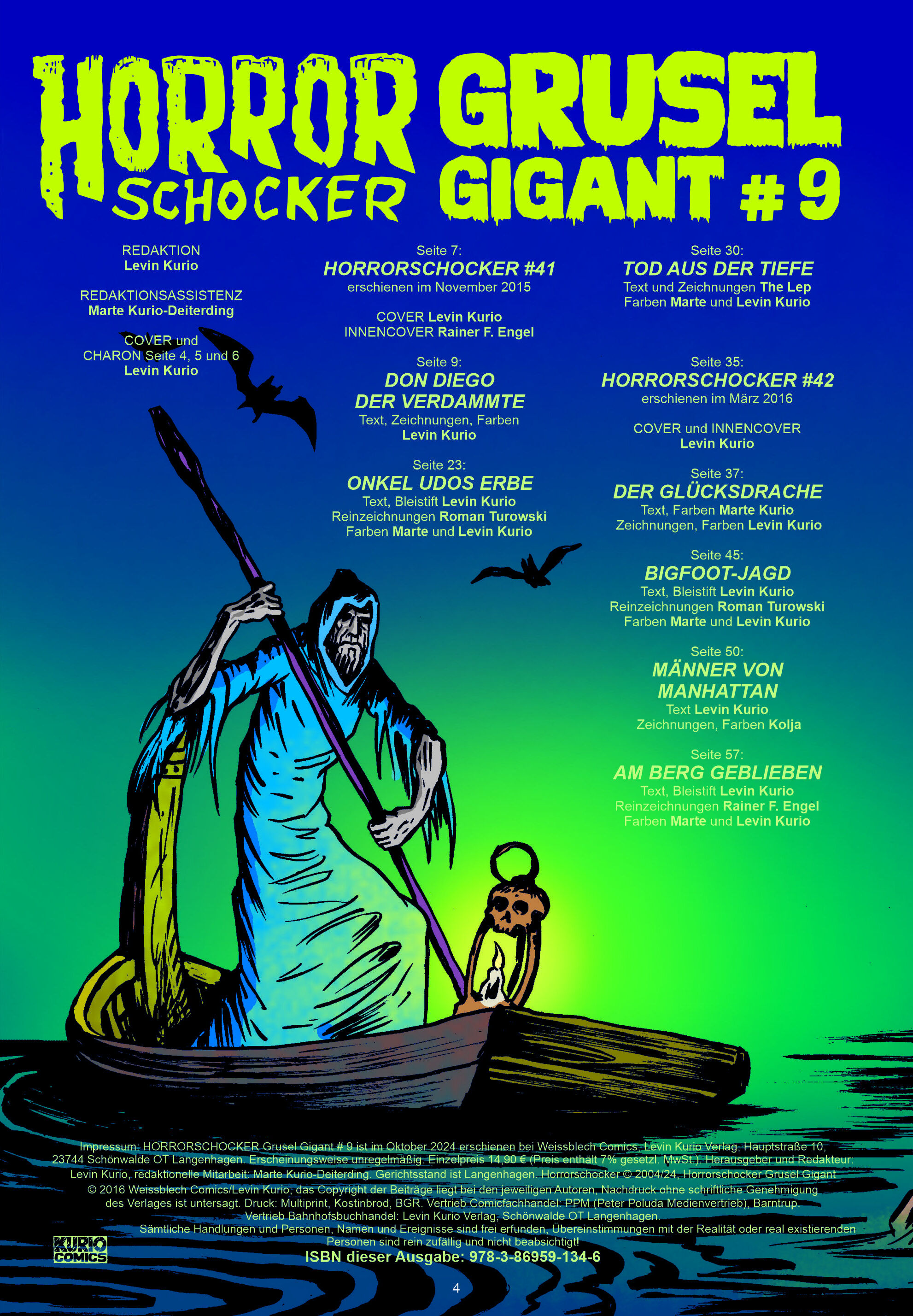 Der mythische Fährmann Charon ist wieder da! Seine Barke ist randvoll mit Geschichten des Grauens, denn mit HORRORSCHOCKER GRUSEL GIGANT # 9 wird der Nachdruck der vergriffenen Hefte von WEISSBLECHs großer Horrorserie fortgesetzt!