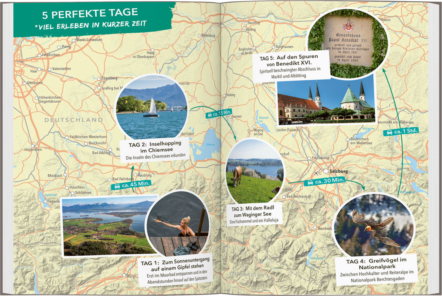 Mit dem MARCO POLO OUTDOOR GUIDE Reiseführer Chiemgau & Berchtesgadener Land idyllische Seen und imposante Gipfel entdecken Eine Drei-Seen-Tour in Bayerisch-Kanada unternehmen, Deutschlands höchsten Wasserfall am Königssee bewundern, auf den Spuren der Fe...