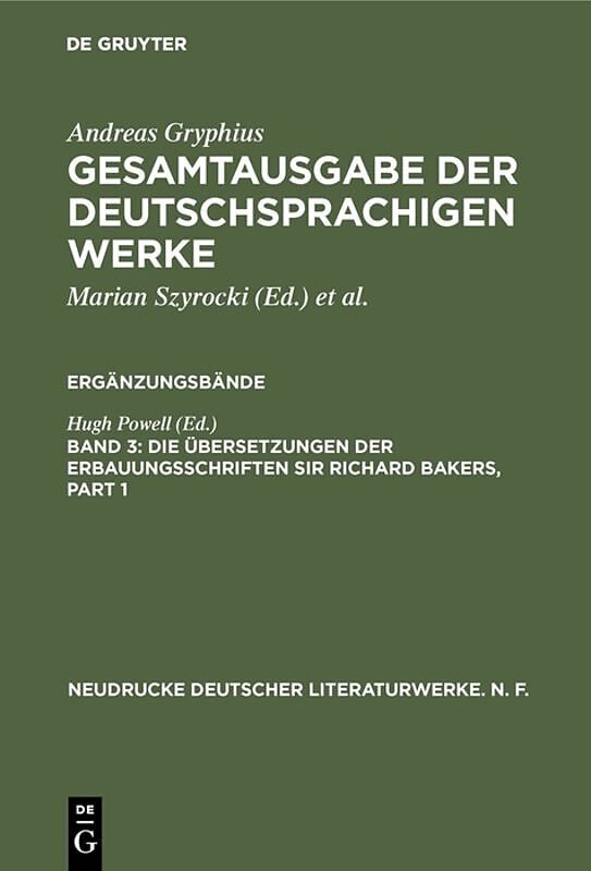 Andreas Gryphius: Gesamtausgabe der deutschsprachigen Werke. Ergänzungsbände / Die Übersetzungen der Erbauungsschriften Sir Richard Bakers