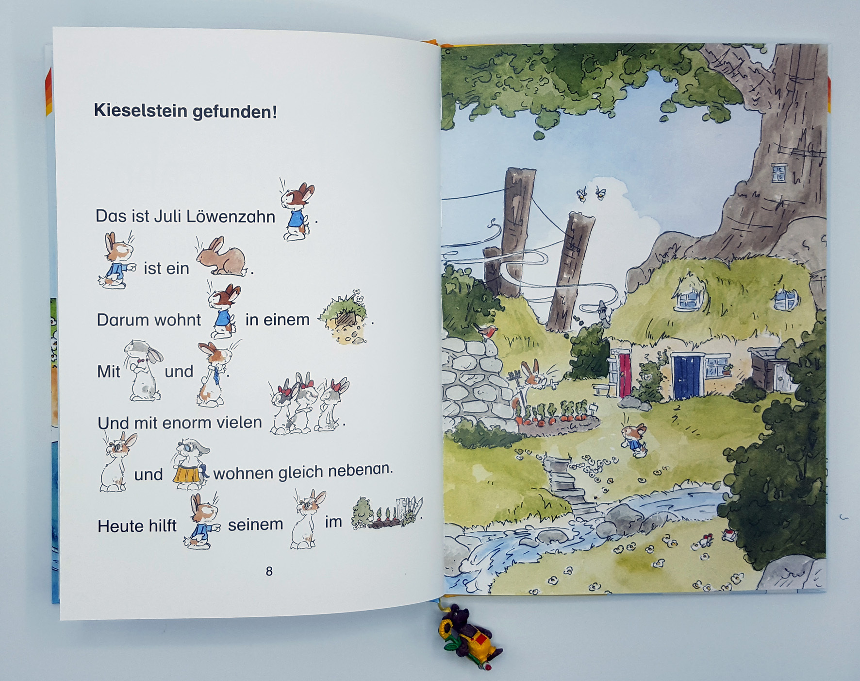 So ein schöner Kieselstein! Aber er liegt mitten im Bach, für Juli Löwenzahn unerreichbar. Doch mit Opas Hilfe erwischt er ihn. Da lauert schon ein neues Abenteuer: Mit seinem besten Freund, der Schildkröte Günther, lässt Juli Schiffchen auf dem Bach fahren. ...