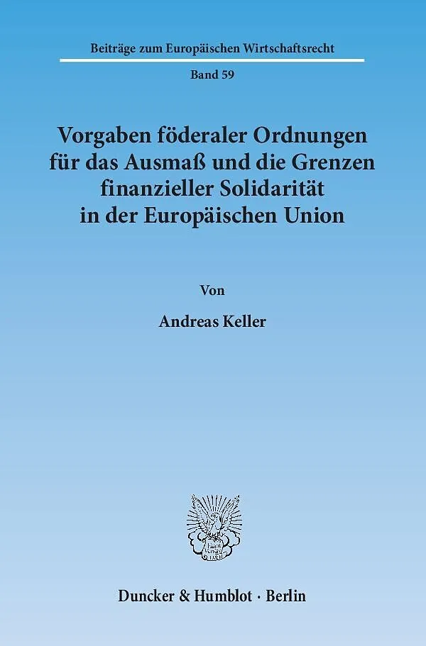 Vor dem Hintergrund der Finanzkrise untersucht Andreas Keller die Ausprägungen finanzieller Solidarität in der Europäischen Union. Durch die Gegenüberstellung von föderalen Systemen Deutschlands, der USA, der Schweiz, Belgiens und Österreichs und ausgewählten ...