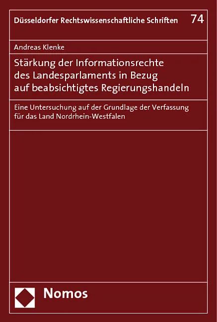 Das Werk untersucht anhand der Verfassung für das Land Nordrhein-Westfalen, wie die Forderungen einiger Landesparlamente nach frühzeitiger Unterrichtung über Vorhaben der Landesregierung verfassungsrechtlich realisiert werden können. Diskutiert wird insbesonde...