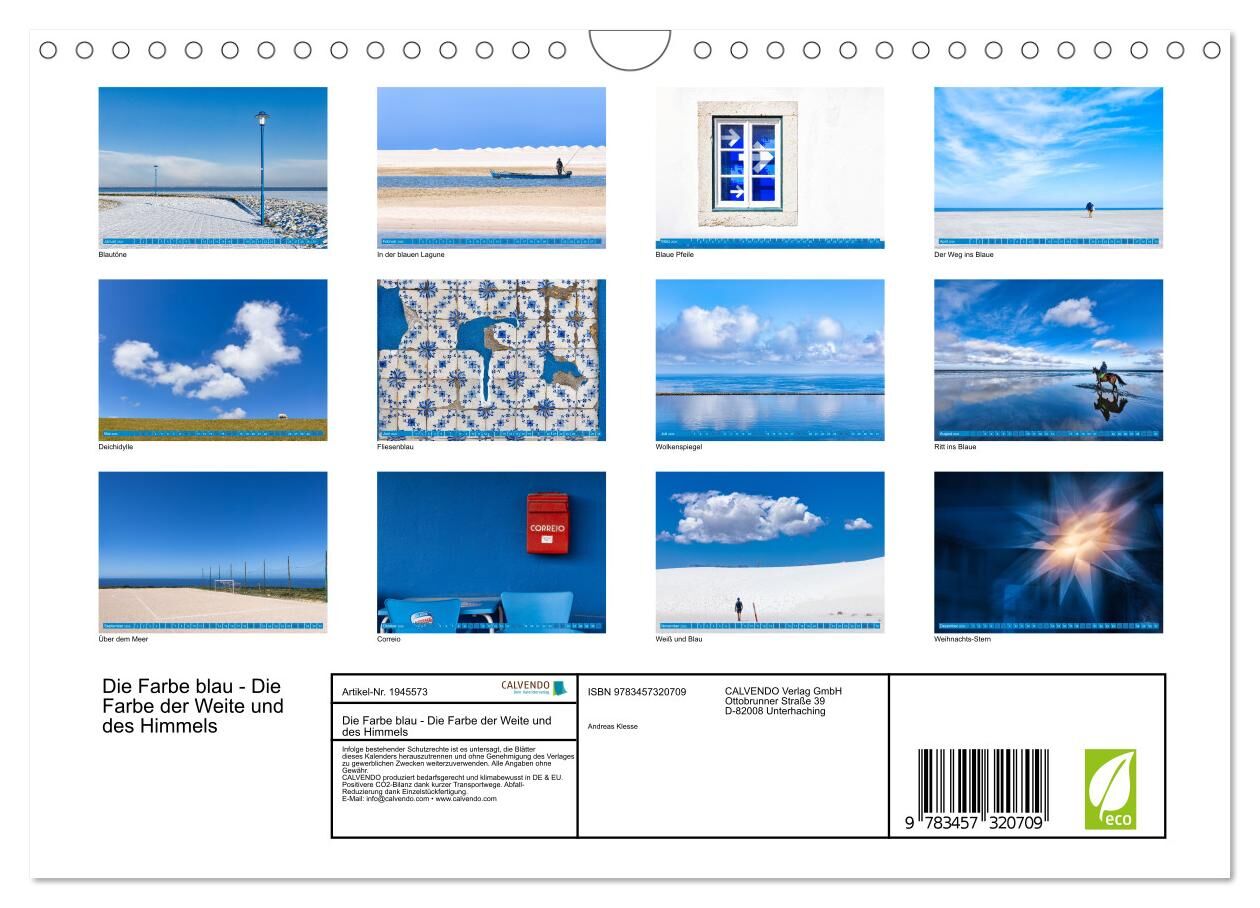 Die beruhigende und entspannende Wirkung der Farbe Blau baut Stress ab und schafft eine positive und entspannte Atmosphäre. Ein Kalender, der diese Eigenschaften durch blaue Bilder betont, bietet nicht nur ästhetischen Genuss, sondern trägt auch zu einem besse...