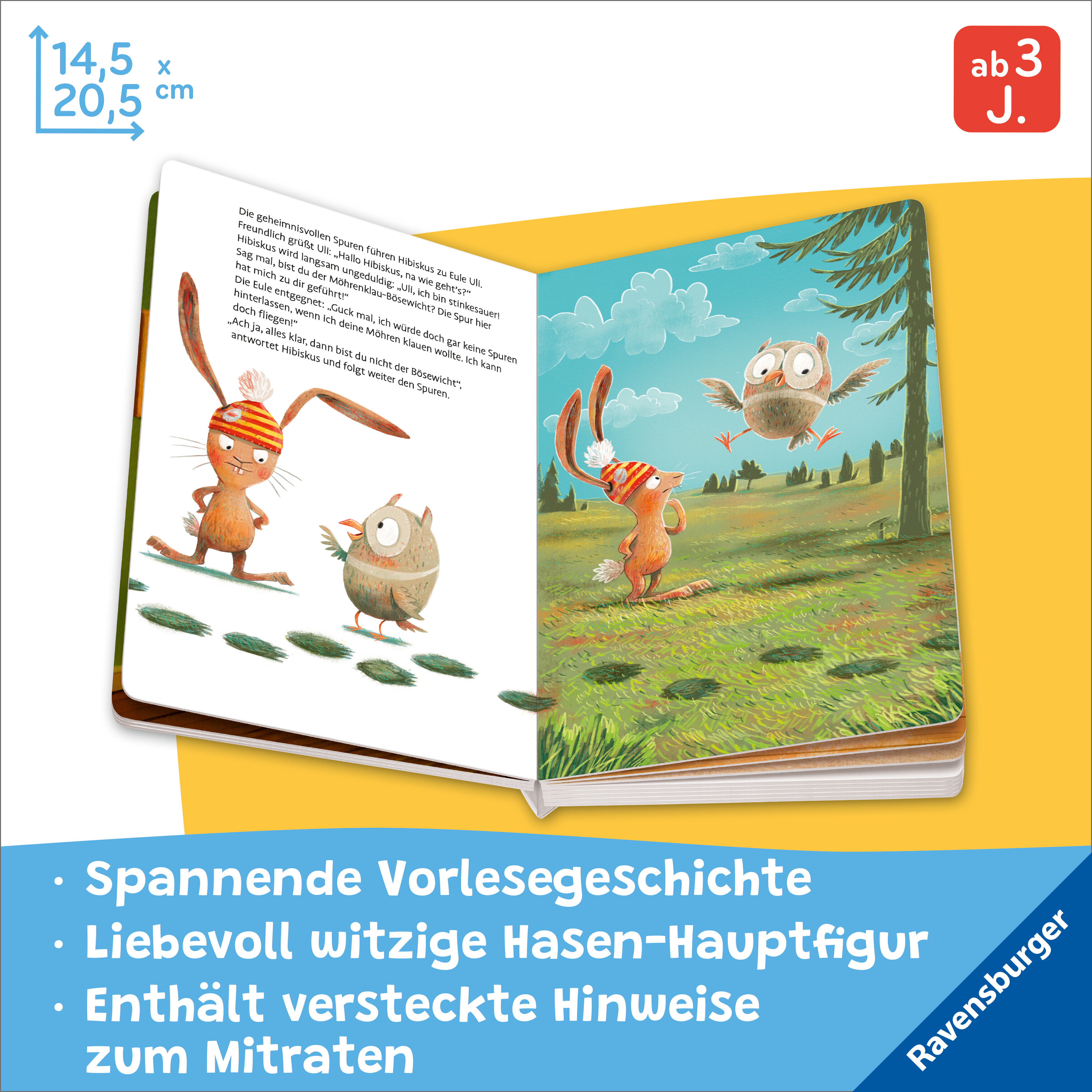 Das erfolgreiche Bilderbuch mit stabilen Pappseiten für Kinder ab 3 Jahren Ach, du heiliger Hasenpups! Jemand hat Hase Hibiskus die Möhren geklaut. Zum Glück hat der freche Dieb Fußspuren hinterlassen. Hase Hibiskus begibt sich sofort auf die Suche. Doch die S...