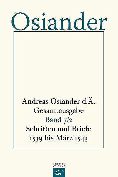 Osiander Gesamtausgabe: Schriften und Briefe Andreas Osiander (1496/8-1552) stand immer im Schatten der großen Reformatoren Luther, Melanchthon, Zwingli und Calvin. Erst die zehnbändige Gesamtausgabe seiner Schriften, Predigten, Gutachten und Korrespondenz hat...