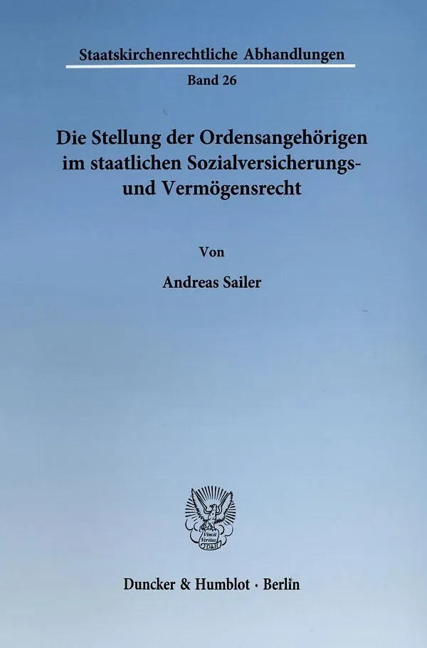 Die Stellung der Ordensangehörigen im staatlichen Sozialversicherungs- und Vermögensrecht.
