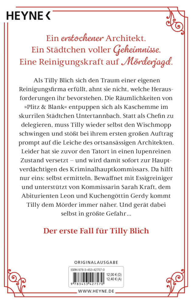 Aufgepasst, ihr Mörder: Hier kommt Tilly Blich. Reinigungskraft, Basset-Besitzerin und Erstklasse-Ermittlerin! Als Tilly Blich sich den Traum einer eigenen Reinigungsfirma erfüllt, ahnt sie noch nicht, welche Herausforderungen ihr bevorstehen. Die Räumlichkeit...