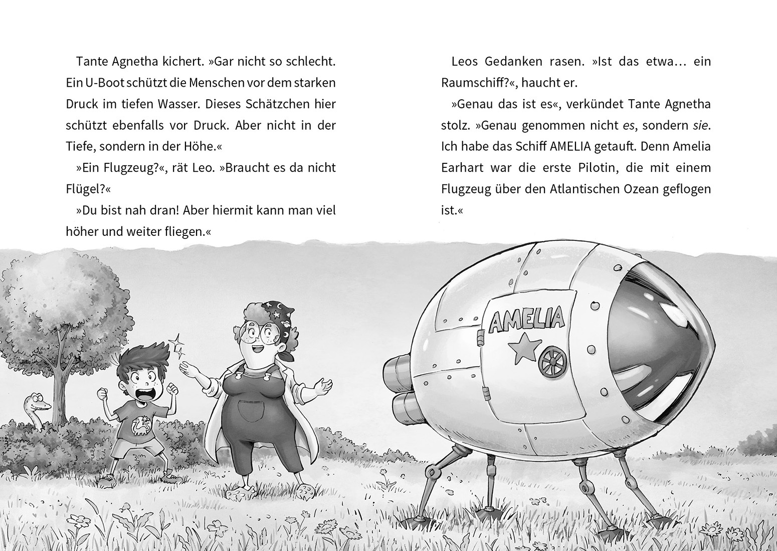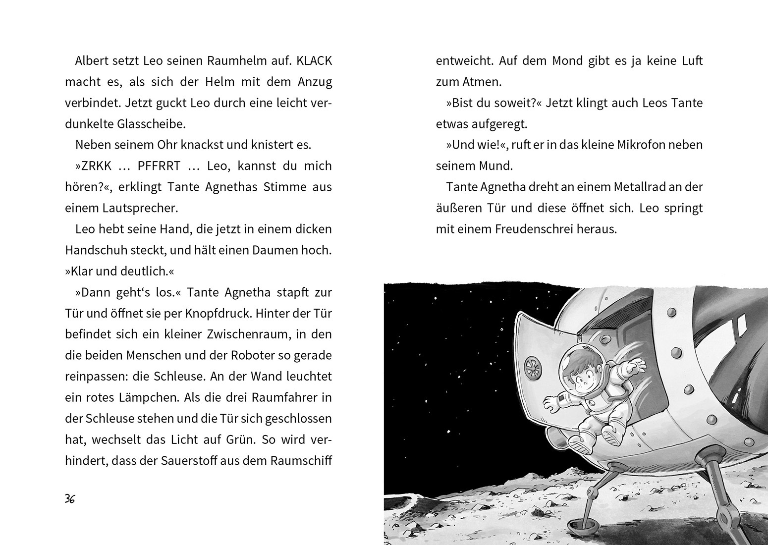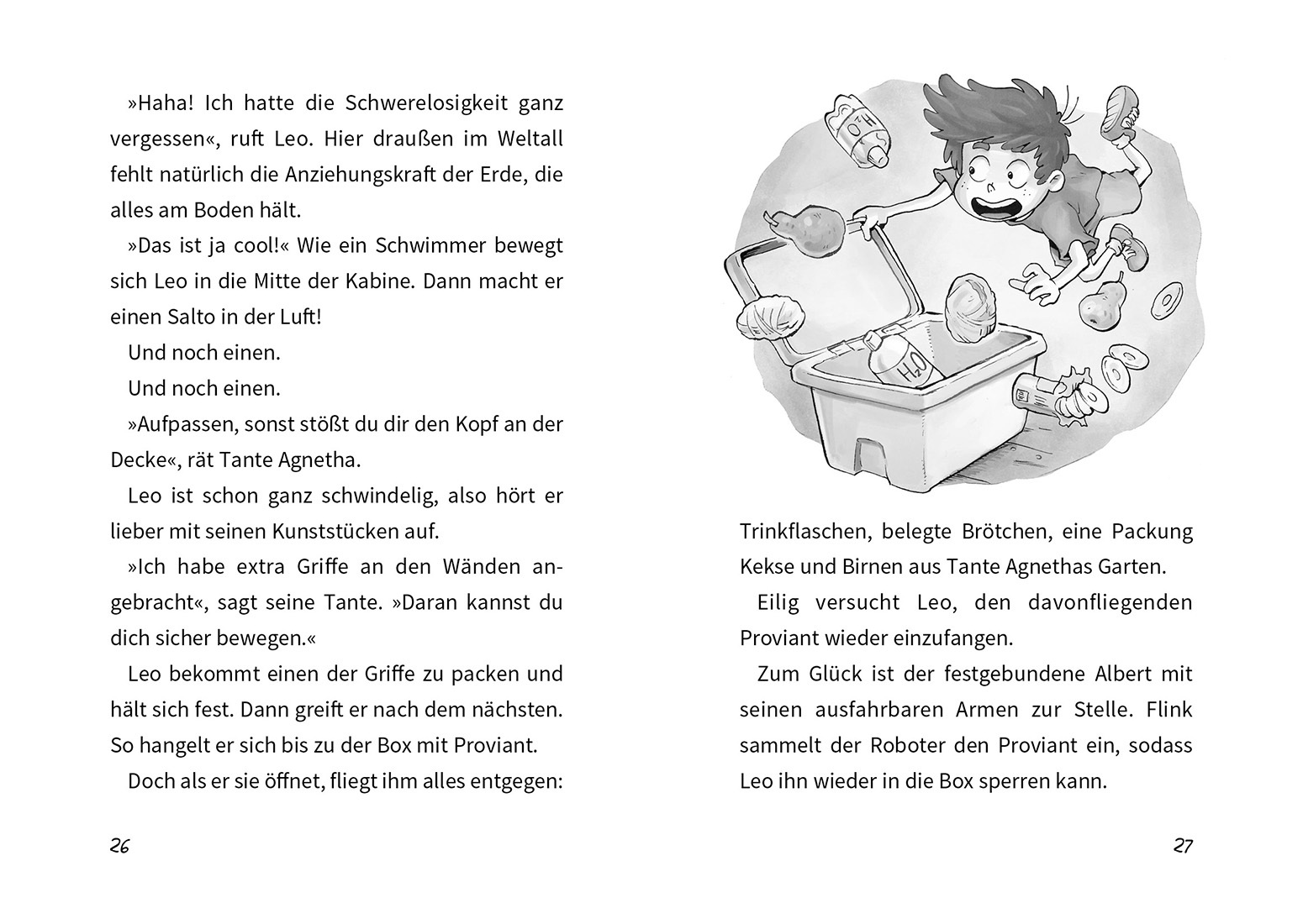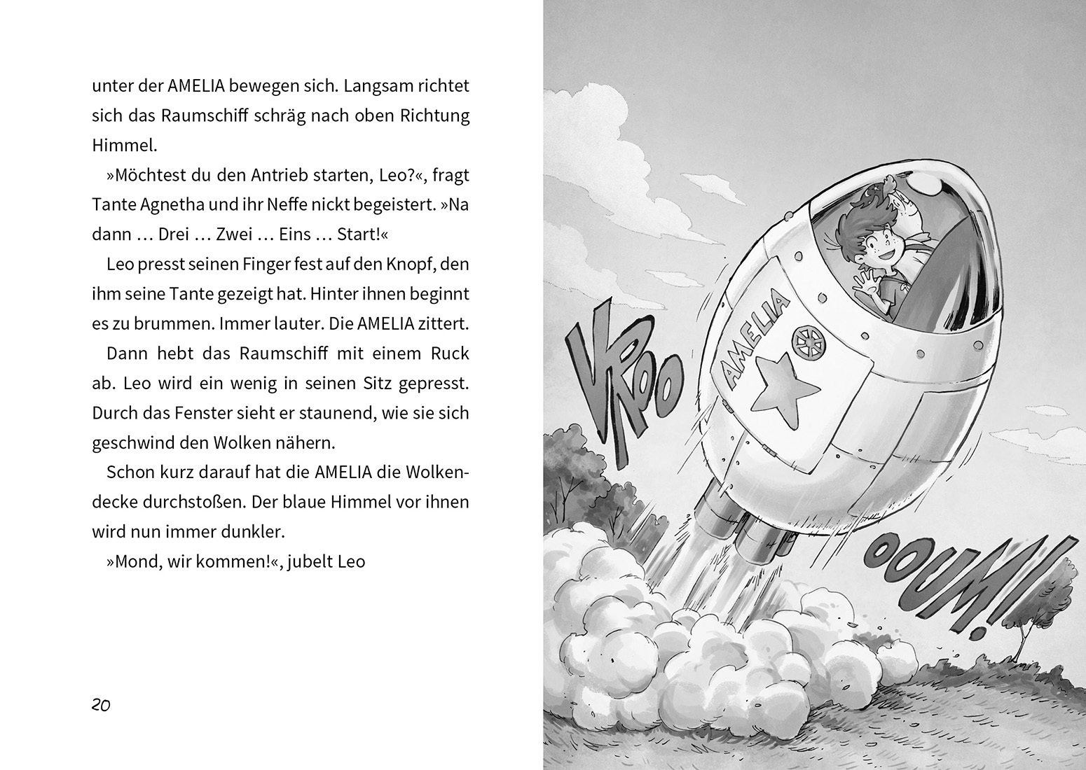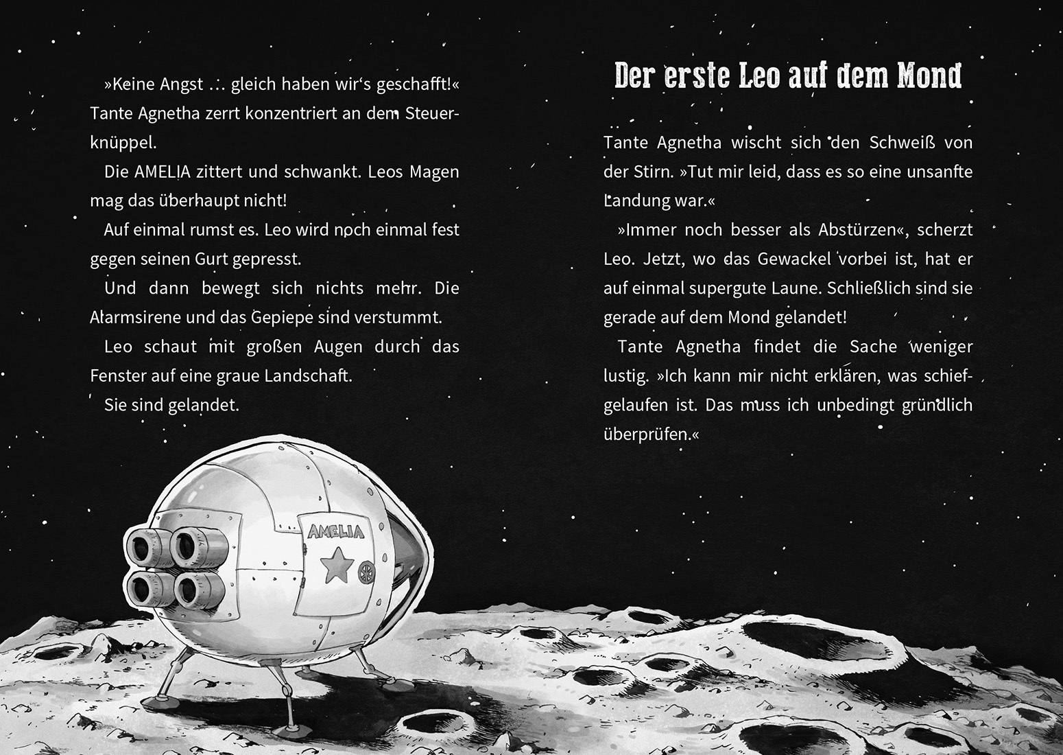 Plötzlich schwerelos! Tante Agnetha hat sich zum Geburtstag ihres Lieblingsneffen Leo etwas ganz Besonderes überlegt: Mit dem Raumschiff Amelia und Haushaltsroboter Albert fliegen sie zum Mond. Sogar ein rasantes Mond-Mobil ist mit an Bord. Doch nicht nur Ess...