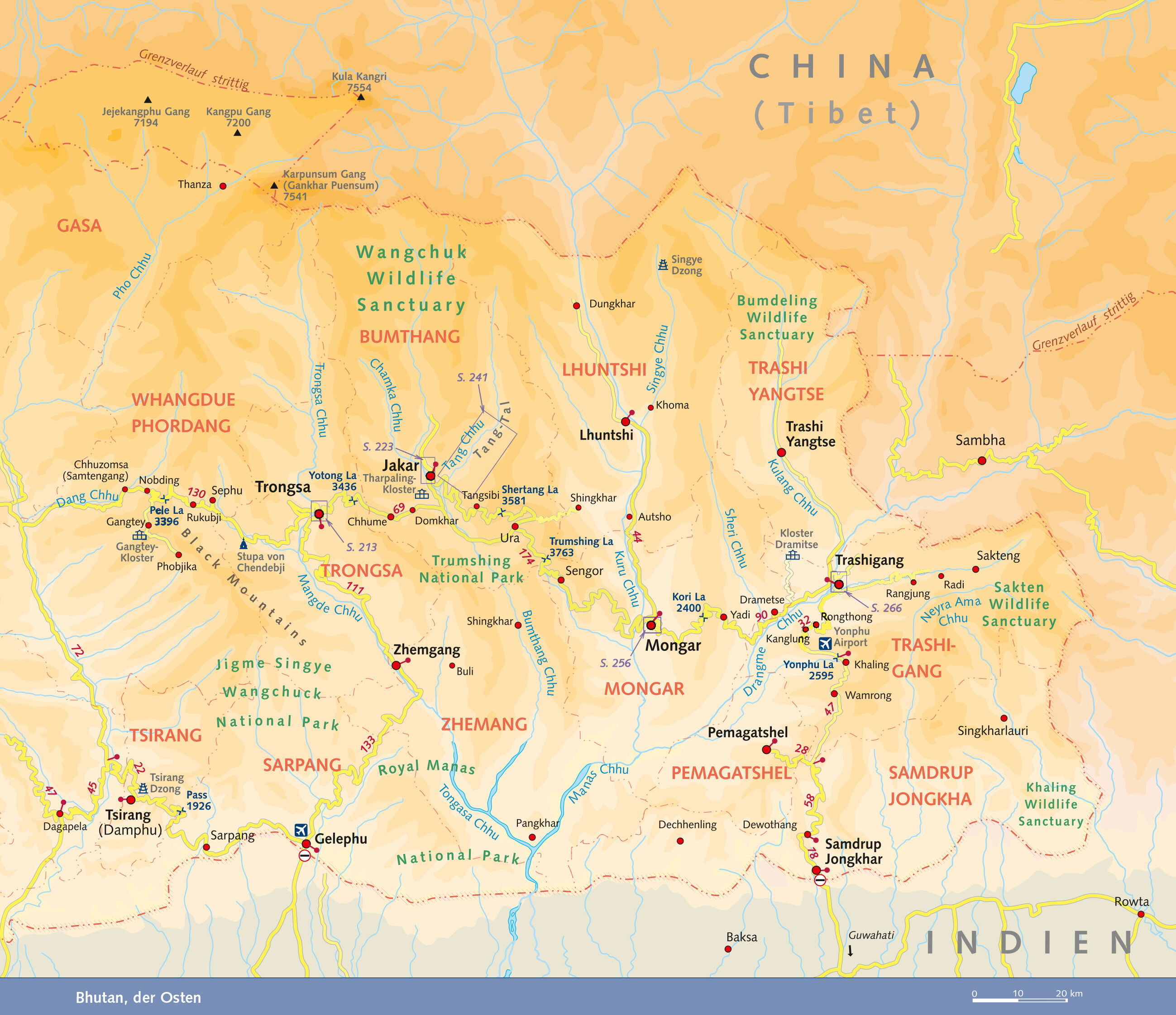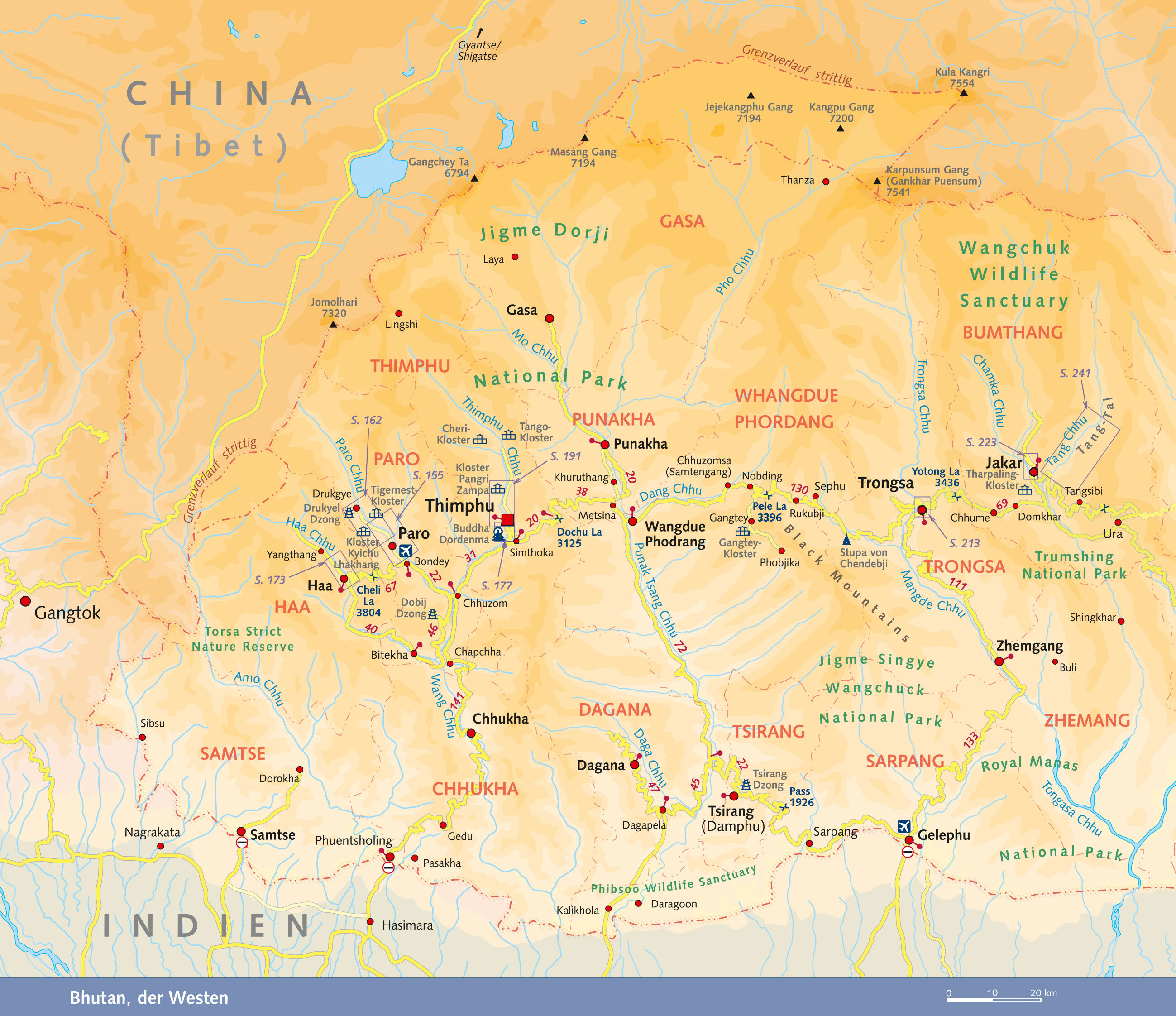 GLÜCK ALS STAATSZIELBhutan steht für etwas, was wir in unserer getakteten und rationalen Welt schon weitgehend verloren haben und immer häufiger suchen: Die Welt hinter dem Sichtbaren, die Welt, wie sie zwischen Mensch und Natur sein könnte, die Spiritualität in den Dingen, die uns umgeben, aber auch im eigenen Ich. Kurz gesagt, das Glück auf Erden. Bhutan - das Land des Bruttosozialglücks ist ein Land mit einer tief verwurzelten buddhistischen Kultur. Dieses kleine Land im östlichen Himalaya kann uns allen als Vorbild dienen, weil es den Respekt vor der Natur, der Kultur und den Menschen höher stellt als die Gier nach Geld, nach Erfolg oder Macht. Wir sind alle nur Sandkörnchen im Universum. Das, was wir meinen erschaffen zu müssen, hat nur dann eine dauerhafte Existenz, wenn es von den Nachkommen belebt wird. Das spürt man sehr deutlich, wenn man in einem Tempel vor einer Statue steht, die seit dem 7. Jahrhundert von den Einheimischen verehrt wird.Bhutan will aber kein Shangri La sein, wie es der Schriftsteller James Hilton 1933 in seinem Roman 'Lost Horizon' beschrieb. Bhutan will ein Staat sein, der die traditionelle Kultur, die Naturreichtümer und die Ressourcen des Landes mit ins 21. Jahrhundert nimmt. Der entscheidende Faktor ist die Geschwindigkeit des Wandels. Überall auf der Welt, wo westlich geprägte Zivilisationen ein Land mit traditioneller Kultur zu schnell überrannt hatten, sind die Traditionen weitgehend zerstört worden, ebenso wie Großteile der Natur. Deshalb bremst Bhutan diesen Prozess durch rigorose Gesetze und klare Ansagen an den Tourismus: Etwa 100 US-Dollar (für 2025) pro Tag muss jeder bezahlen, der das Königreich besuchen möchte. Das schreckt viele ab und das ist auch gut so, wenn man es mit der Situation in Nepal vergleicht, wo schon in den 1960er Jahren die freien Kräfte des Touris¬mus vieles zerstört haben.Mir war es auf Einladung von bhutanischer Seite vergönnt, mich als Reisejournalist frei im Land bewegen zu dürfen. Damit ich das auch ohne die Kosten und die Umständlichkeit eines motorisierten Fahrzeuges machen konnte, erhielt ich darüber hinaus auch das Privileg, mit dem eigenen Reiserad das Land erkunden zu dürfen. Diese Ehre möchte ich in Form von möglichst genauer Recherche und mit dem Blick auf die 'Details am Straßenrand' an die Leser weitergeben und sie dadurch an der Reise durch dieses grandiose Land teilhaben lassen.Bhutan ist ein kleines Land, hat aber für den Tourismus eine magnetische Anziehungskraft. So entstand 2015 der erste deutschsprachige Reiseführer zu Bhutan. Nach dem coronabedingten Zusammenbruch des Tourismus erholen sich die Besucherzahlen seit 2023 wieder ganz vorsichtig. Diese Krise hat aber auch ihre Spuren hinterlassen und machte eine Aktualisierung nötig. Allerdings konnte 2024 der ferne Osten und Süden Bhutans nicht bereist werden. Ich bitte daher um Nachsicht, wenn die Angaben zu Adressen, Preisen oder Pistenoberflächen im Süden und Osten nicht mehr aktuell sind.Somit allen ein herzliches 'Kuzungzangpo-La' (Willkommen) in Bhutan! Ich wünsche allen Bhutan-Reisenden einen gelungenen und zufriedenen Aufenthalt, mit viel Muße für die Begegnungen mit den Menschen, der Kultur und der Natur des Landes.... weitere Reiseführer zu den Ländern des Himalya und zu Asien finden Sie auf der Website des Trescher Verlags.