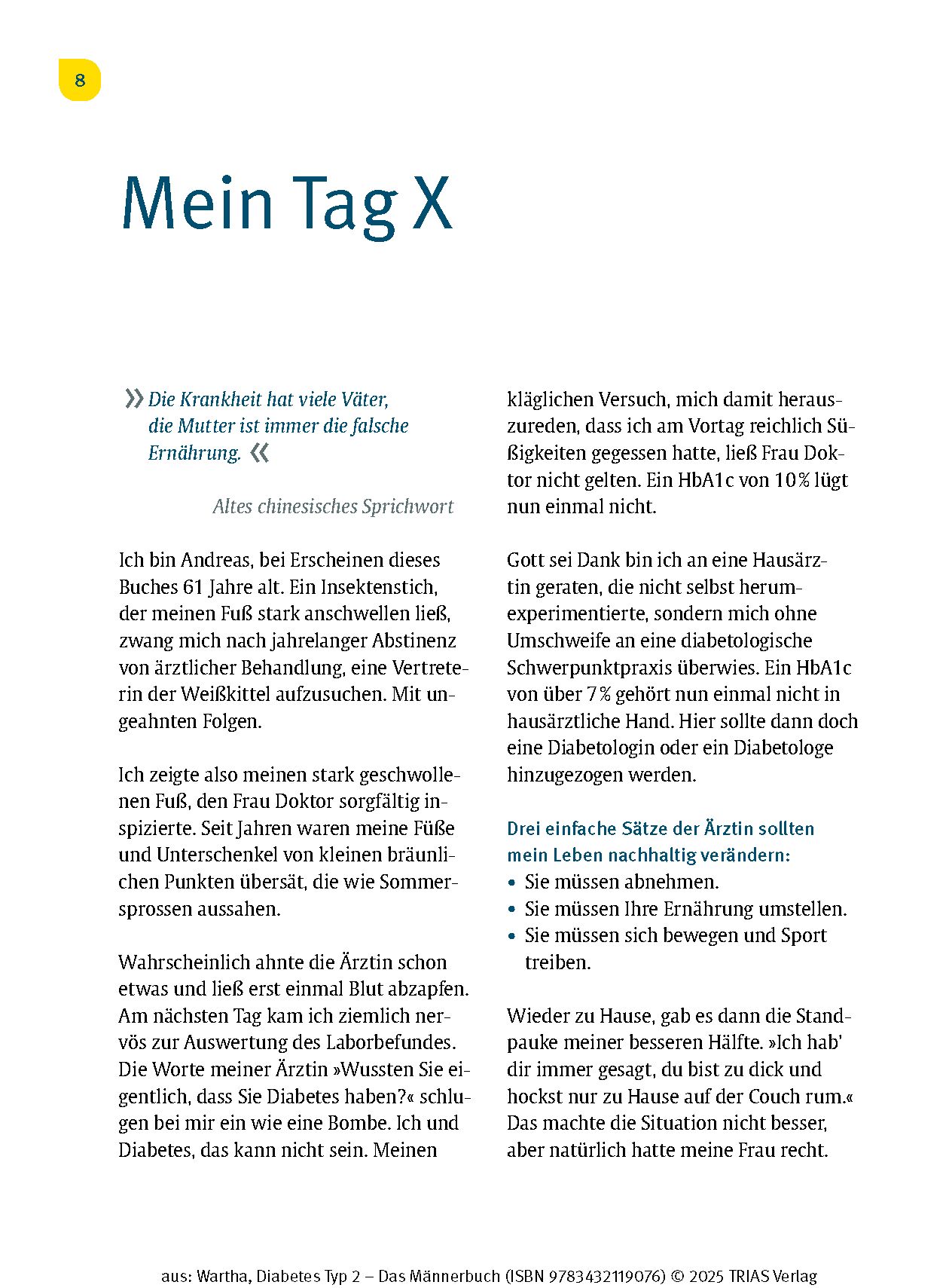 »Wenn ich das geschafft habe, schafft ihr das erst recht!« Andreas Wartha, bekennender Couch-Potato, Genuss- und Stress-Esser, Antisportler und mit Mitte 50 »plötzlich« Diabetiker. Die Diagnose schlug ein wie ein Blitz. Doch was nun tun? Raus aus der Komfortz...