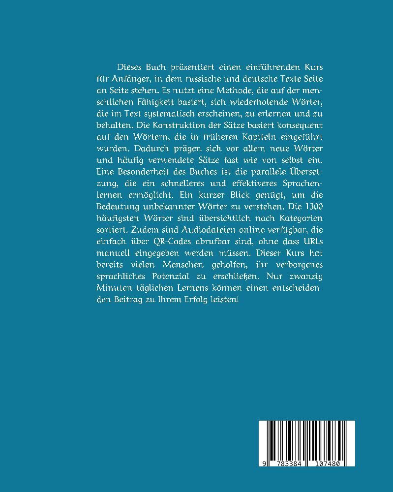 Dieses Buch präsentiert einen einführenden Kurs für Anfänger, in dem russische und deutsche Texte Seite an Seite stehen. Es nutzt eine Methode, die auf der menschlichen Fähigkeit basiert, sich wiederholende Wörter, die im Text systematisch erscheinen, zu erler...