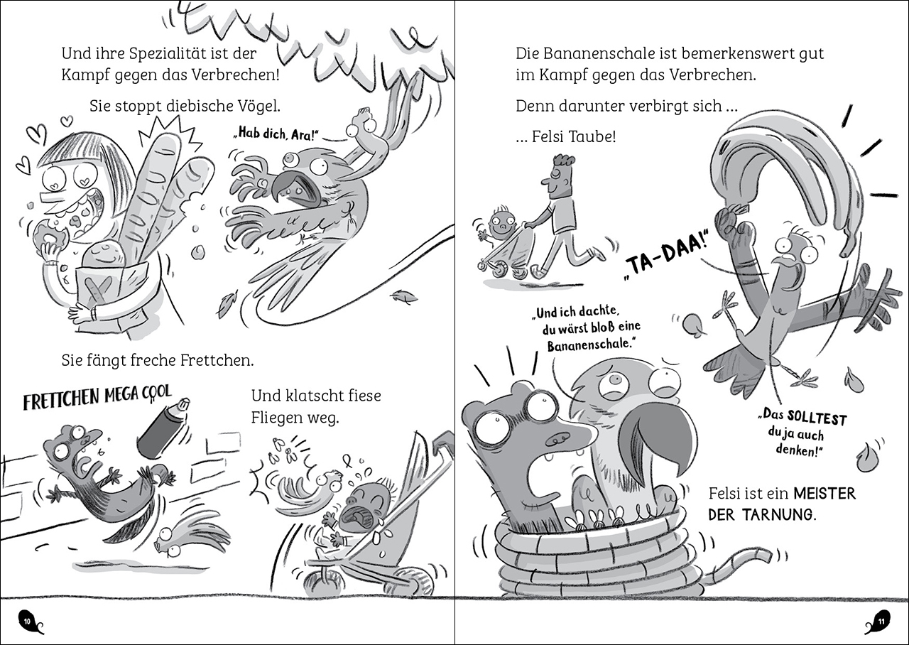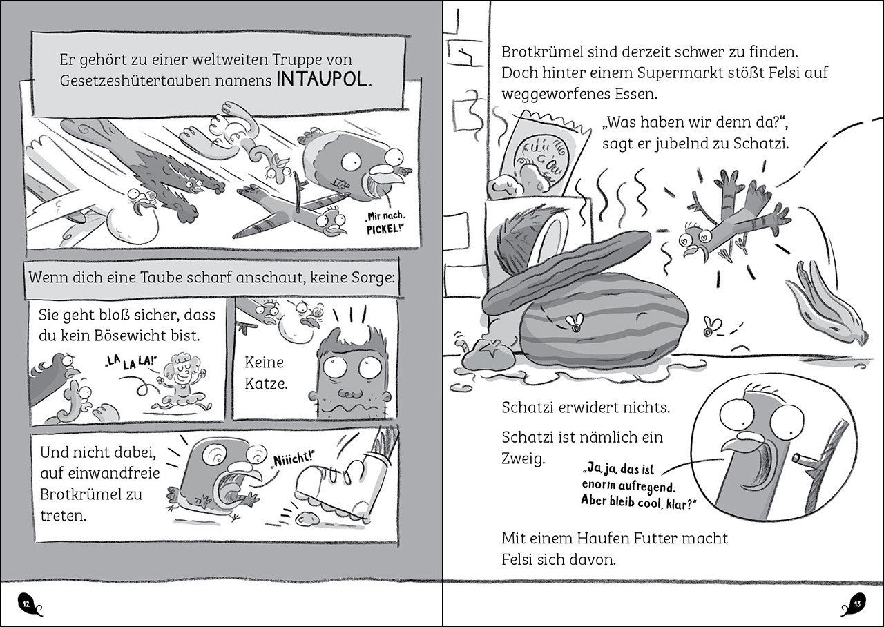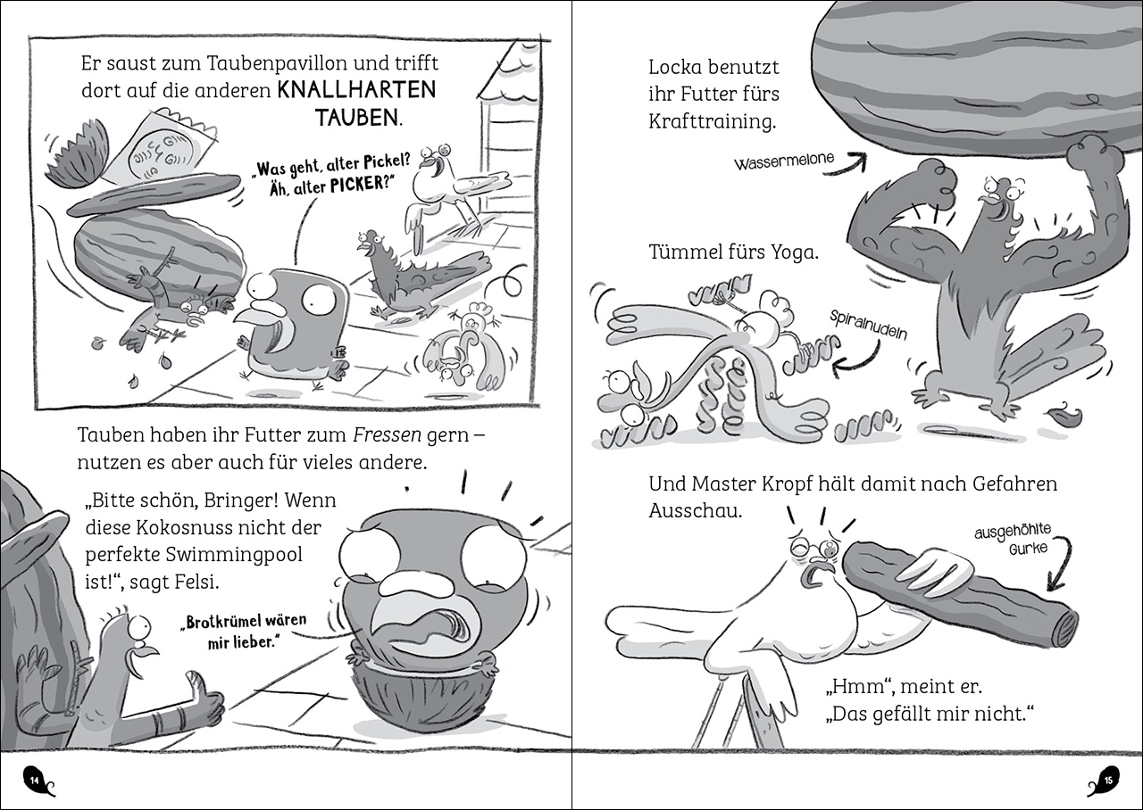 Die Knallharten Tauben decken auf! Ach du dicker Krümel! Ein unheimliches Brotmonster treibt vor der Bäckerei sein Unwesen. Noch dazu hat die neue Bürgermeisterin alle Vögel aus der Stadt verbannt hinter jeder Ecke lauern nun hinterlistige Vogelfänger! Auf den...
