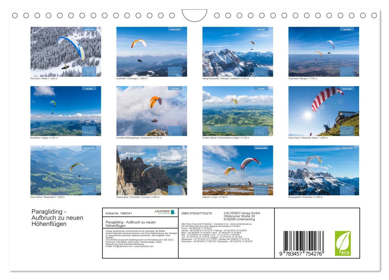 Paragliding - Aufbruch zu neuen Höhenflügen (Wandkalender 2026 DIN A4 quer), CALVENDO Monatskalender