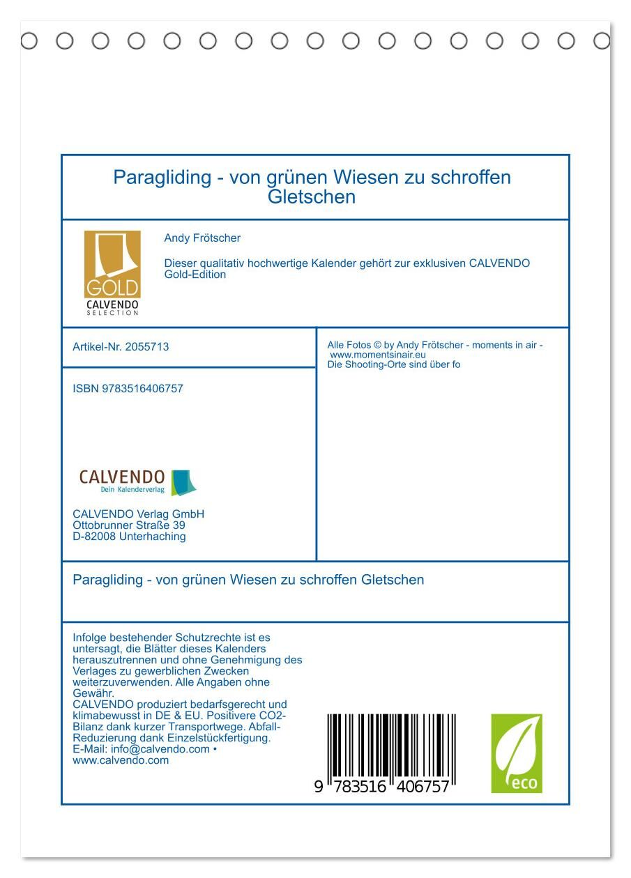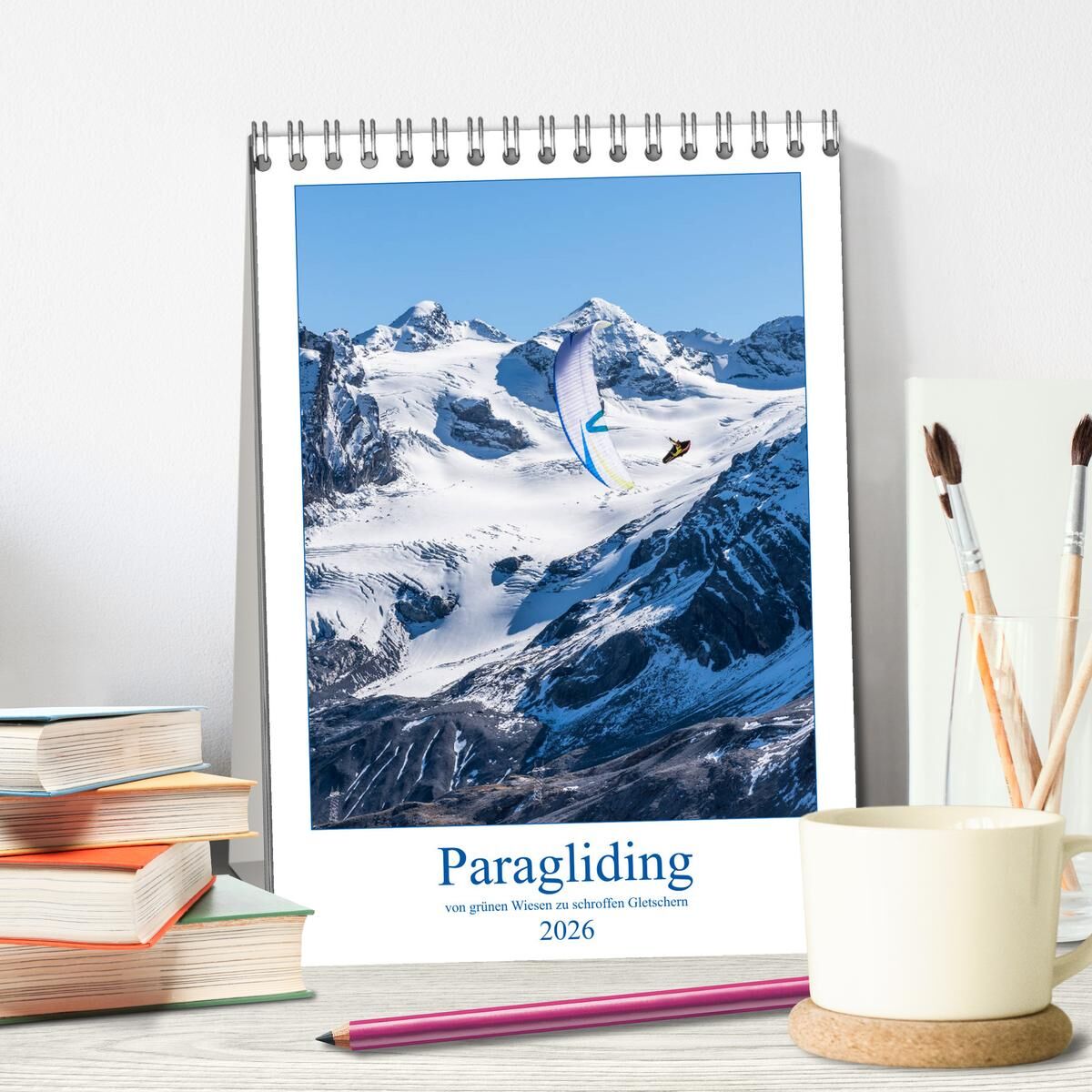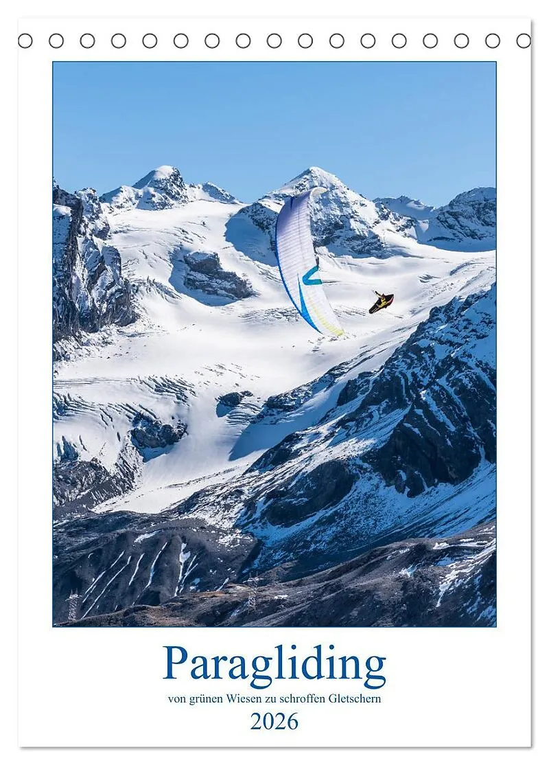Paragliding - von grünen Wiesen zu schroffen Gletschen (Tischkalender 2026 DIN A5 hoch), CALVENDO Monatskalender