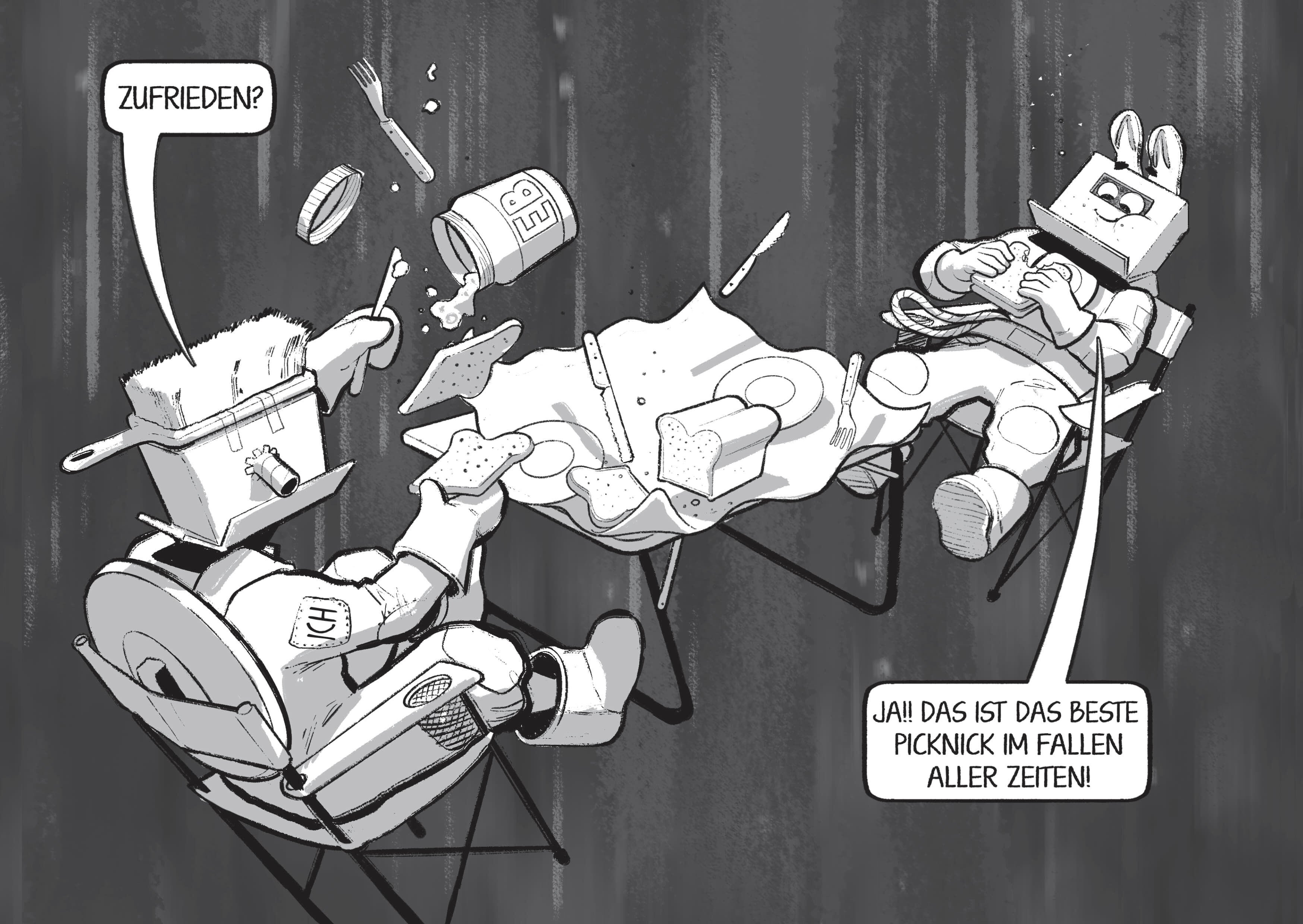 "Weißt du noch, als wir das tiefe Loch gefunden haben und du hineingesprungen bist und ich dich retten musste und wir die Höhle des legendären Erdnussbutter-Monsters entdeckt haben? Was? Du erinnerst dich nicht mehr? Dann muss ich dir diese Geschichte noch ma...