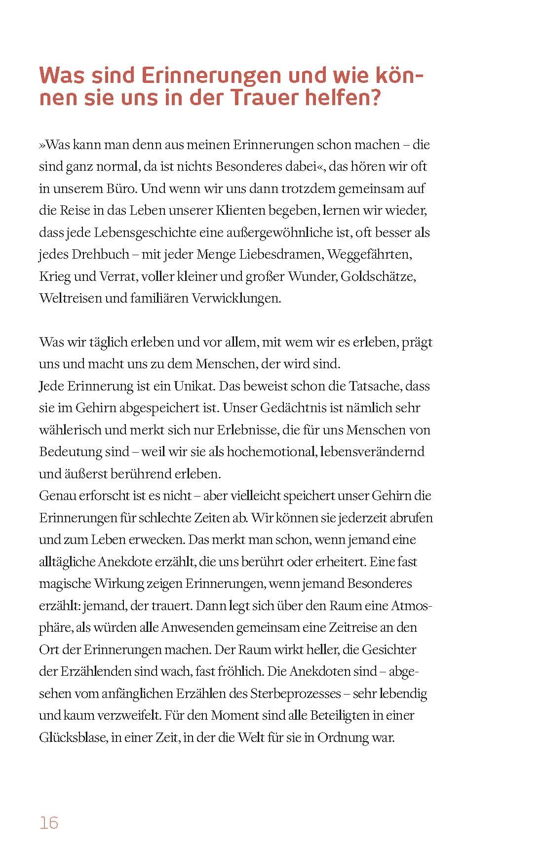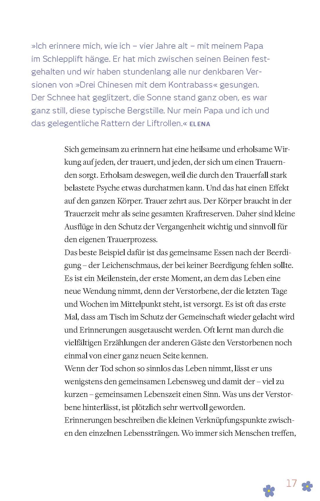 Mit Trauer kennt sich niemand aus, bevor er sie nicht selbst erlebt hat. Und plötzlich steckt man mittendrin in einem Zustand, in dem alles versagt, worauf man sich bisher verlassen konnte. Was bleibt, sind die Erinnerungen. Den eigenen Erinnerungsschatz wahrz...