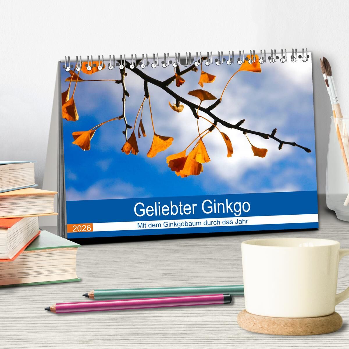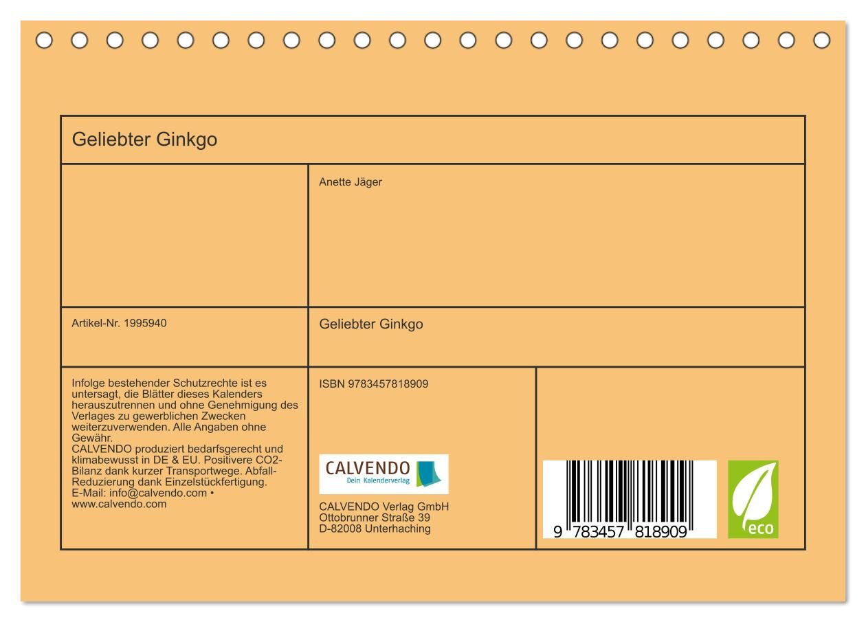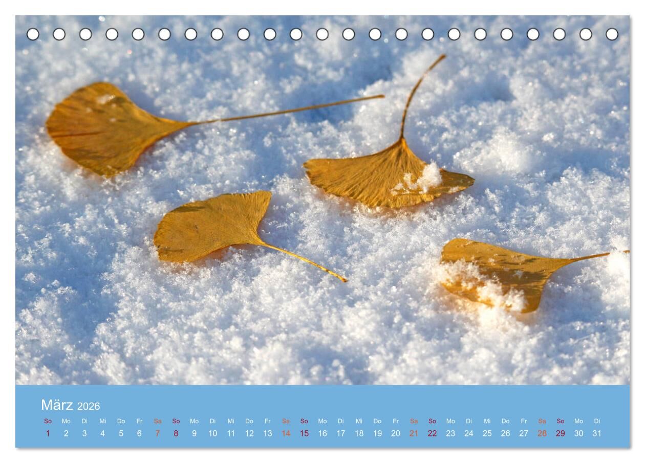 Ein Kalender mit Farbaufnahmen vom Ginkgobaum. Dieser schöne Baum mit seinen aparten, herzförmigen Blättern ist in China heimisch. Er wird hierzulande seit dem 18. Jahrhundert angepflanzt. Der Ginkobaum verliert im Winter seine Blätter. Er findet auch in der M...