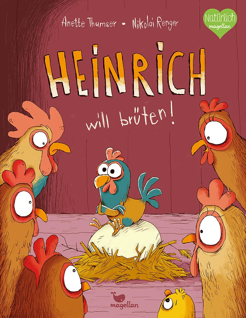 Thumser, Heinrich brüten, ab 3 Jahre Ein außergewöhnliches Bilderbuch, das mit Rollen- und Geschlechterklischees (nicht nur) auf dem Bauernhof aufräumt. Unterhaltsam vorzulesen und das ideale Geschenk zu Ostern. Danach kräht der Hahn! Heinrich ist schon ein gr...