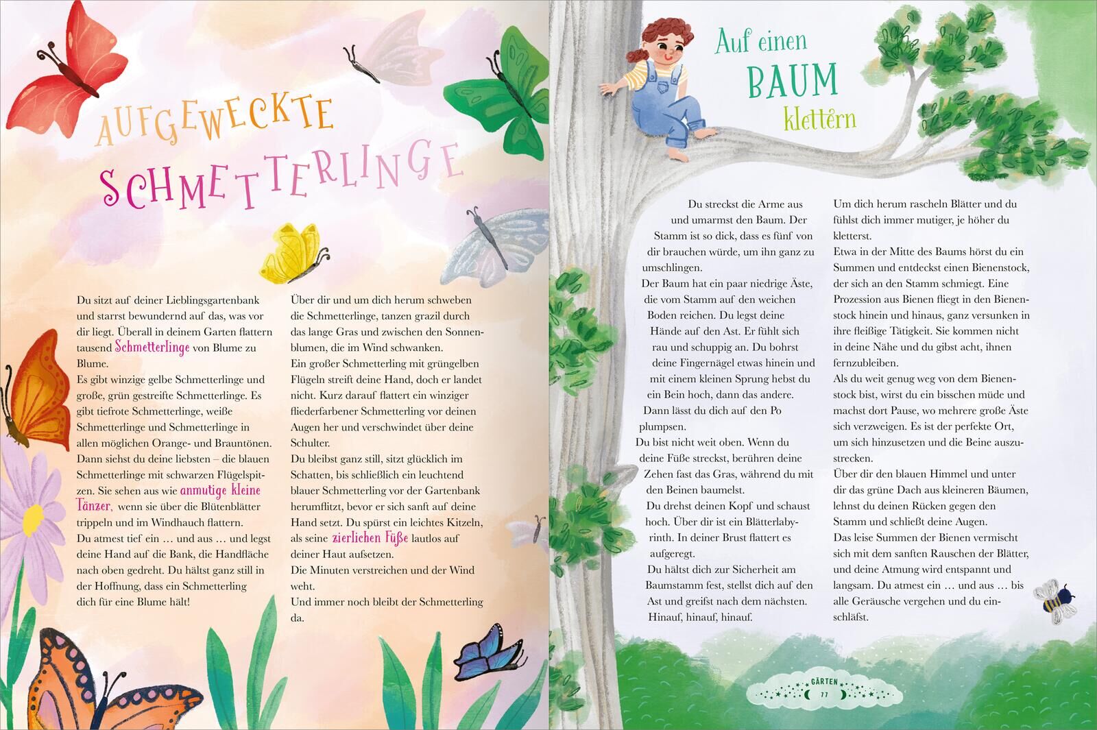 Ob fliegende Abenteuer durch den sternenklaren Nachthimmel, Schatzsuchen am Strand, Begegnungen mit sprechenden Tieren oder Ausflüge in ferne Galaxien die kurzen Geschichten sind so vielfältig wie die Träume selbst. Kinder können als Superhelden die Welt retten, mit Zauberstäben Magie versprühen oder in geheimen Gärten verborgene Schätze entdecken. Das Traumglossar lädt dazu ein, gezielt Geschichten auszuwählen, die genau zur Stimmung des Abends passen. ** Ein Traum für jede Nacht ist eine Einladung, den Tag entspannt ausklingen zu lassen und mit wundervollen Geschichten ins Reich der Träume zu gleiten.