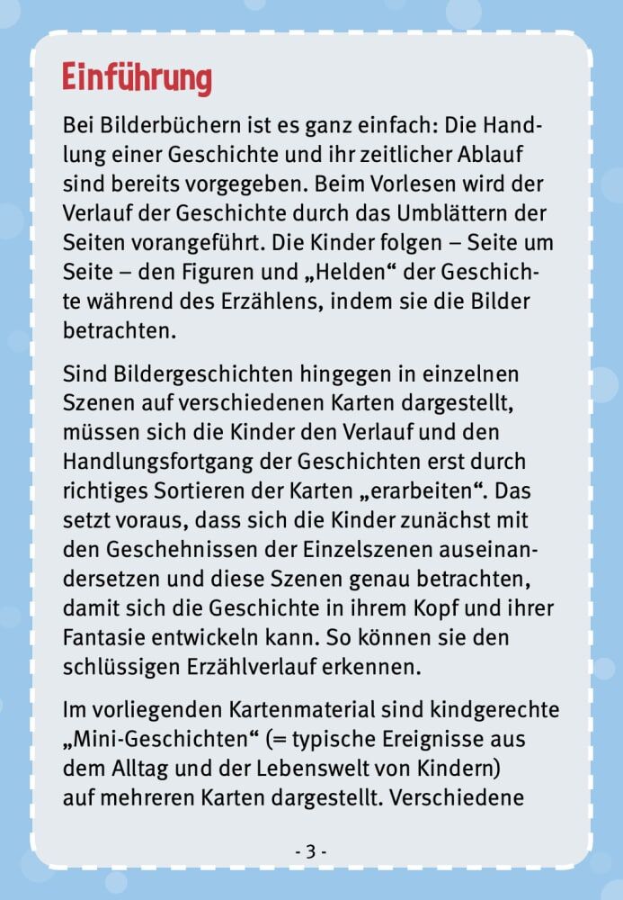 Denkvermögen & Ausdruck verbessern: Mini-Geschichten in die richtige Reihenfolge bringen. Kita, Grundschule & Sonderpädagogik. Ein Don Bosco-Bildkarten-Set. Was passiert hier? Lernspiel für Logik, Aufmerksamkeit und Konzentration Was machen Kinder zuer...