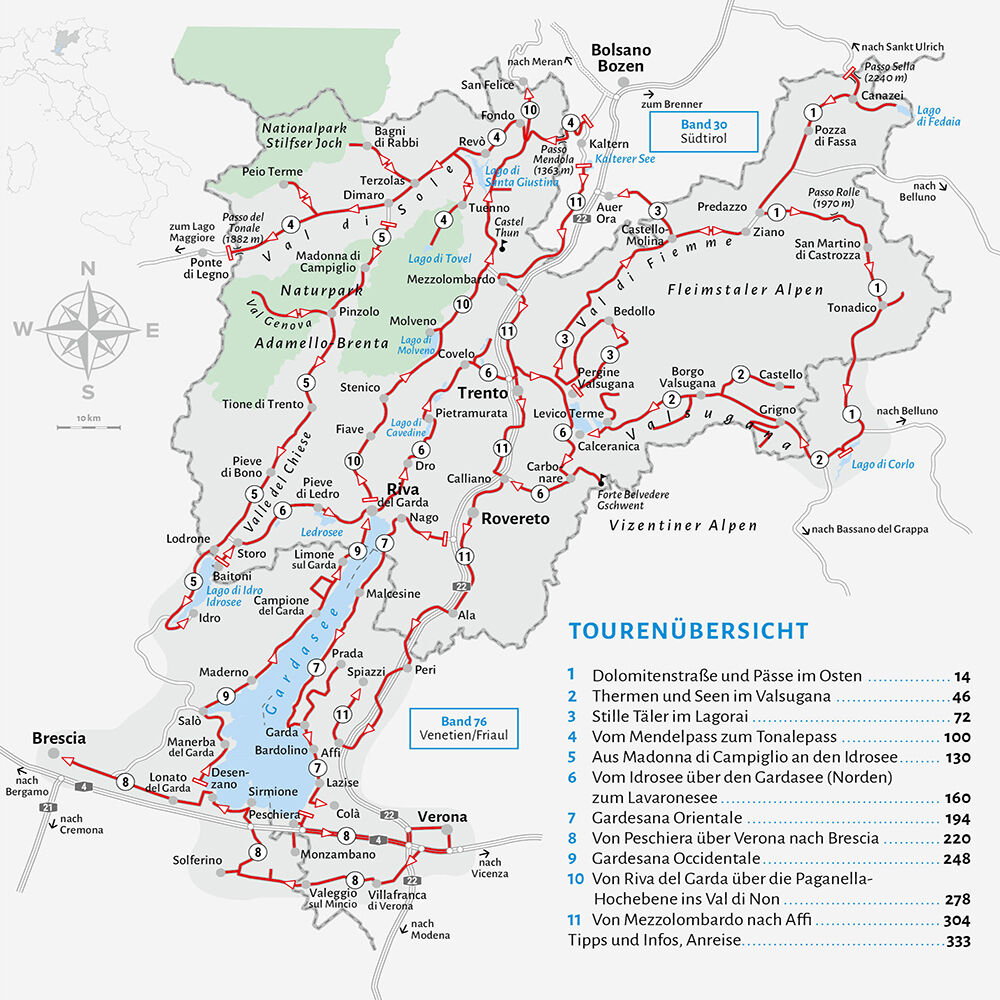 Der Gardasee und das Trentino bieten Wohnmobilurlaubern alle Möglichkeiten. Auf 11 Touren erkunden wir Natur- und Kultur- Highlights zwischen Dolomitenpässen und Brescia. Genuss und Badespaß an den vielen Seen kommen nicht zu kurz. Wertvolle Tipps für Sehenswü...