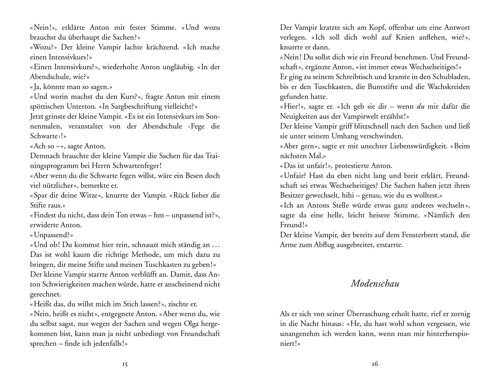Anna, die Schwester des kleinen Vampirs, ist eifersüchtig. Hat Anton Olga lieber? Ernster noch ist eine andere Herzensangelegenheit: Tante Dorothees «Beziehung» zu Igno von Rant wird immer intensiver. Schließlich schlägt sie dem Familienrat vor, Igno von Rant...