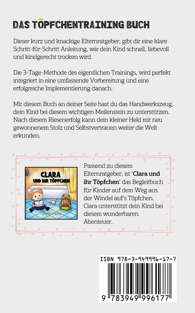 Dieser kurz und knackige Elternratgeber, gibt dir eine klare Schritt-für-Schritt Anleitung, wie dein Kind schnell, liebevoll und kindgerecht trocken wird. Die klassische 3-Tage-Methode des eigentlichen Trainings, wird perfekt integriert in eine umfassende Vorb...