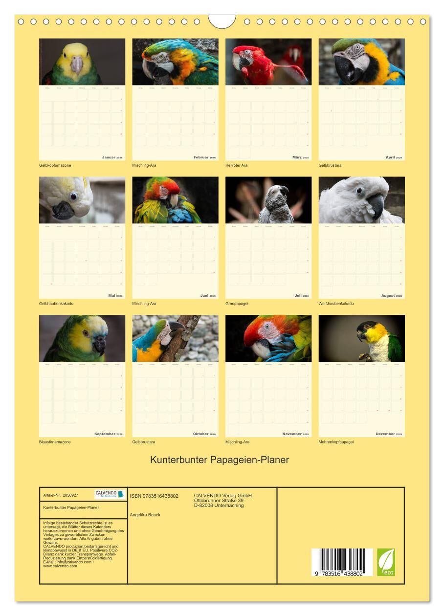 Kunterbunter Papageien-Planer (Wandkalender 2026 DIN A3 hoch), CALVENDO Monatskalender