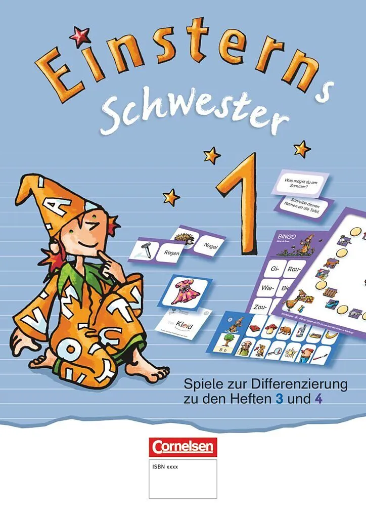 Spielerisch üben mit Einsterns Schwester: Die motivierende Sammlung zu den Buchstabenheften 3 und 4 enthält verschiedene Spiele mit Wort- und Bildkarten, Dominos, Klammerkarten, Bingos und Würfelspiele - mit vielfältigen Übungen auf der Buchstaben-/Laut-, Silben-, Wort- und Satzebene. Die Kinder können allein, mit einem Partner oder in der Gruppe handlungsorientiert mit den Materialien umgehen und werden durch die abwechslungsreichen spielerischen Möglichkeiten besonders motiviert.