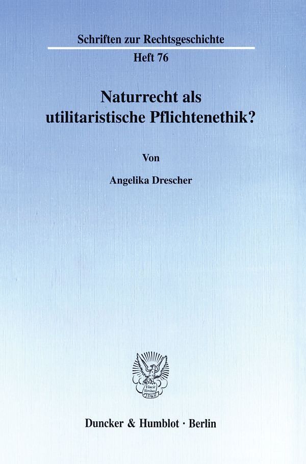 Wie utilitaristisch ist das klassische Naturrecht des 17. und 18. Jahrhunderts? Diese Frage soll Angelika Dreschers Analyse der Grundsätze beantworten, auf denen sechs beispielhaft ausgewählte Naturrechtssysteme beruhen. Pufendorf, Leibniz, Thomasius und Wolff...