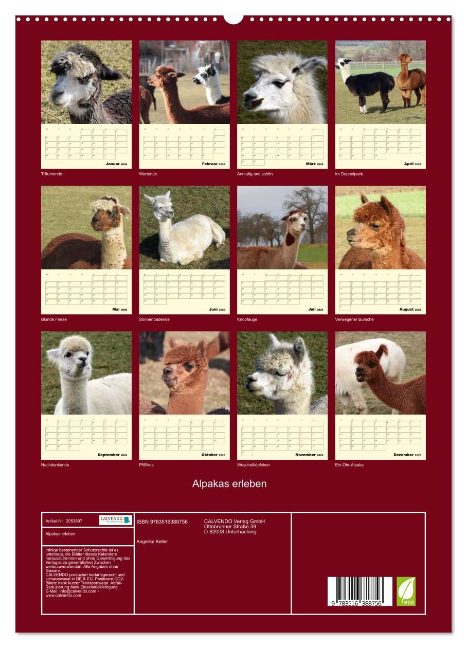 Alpakas - liebenswert und schön - das sind die Stars in diesem PLANER. Sie sind meist einfarbig schwarz, weiß oder braun, einige sogar mehrfarbig. Der PLANER zeigt eine kleine Auswahl dieser liebenswerten Tiere, die man am Liebsten immer gleich knuddeln würde....