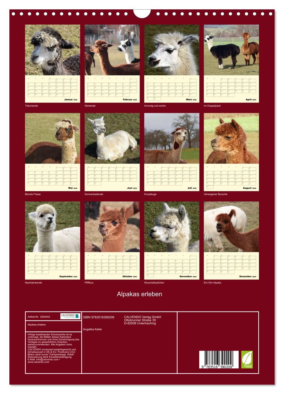 Alpakas erleben (Wandkalender 2026 DIN A3 hoch), CALVENDO Monatskalender