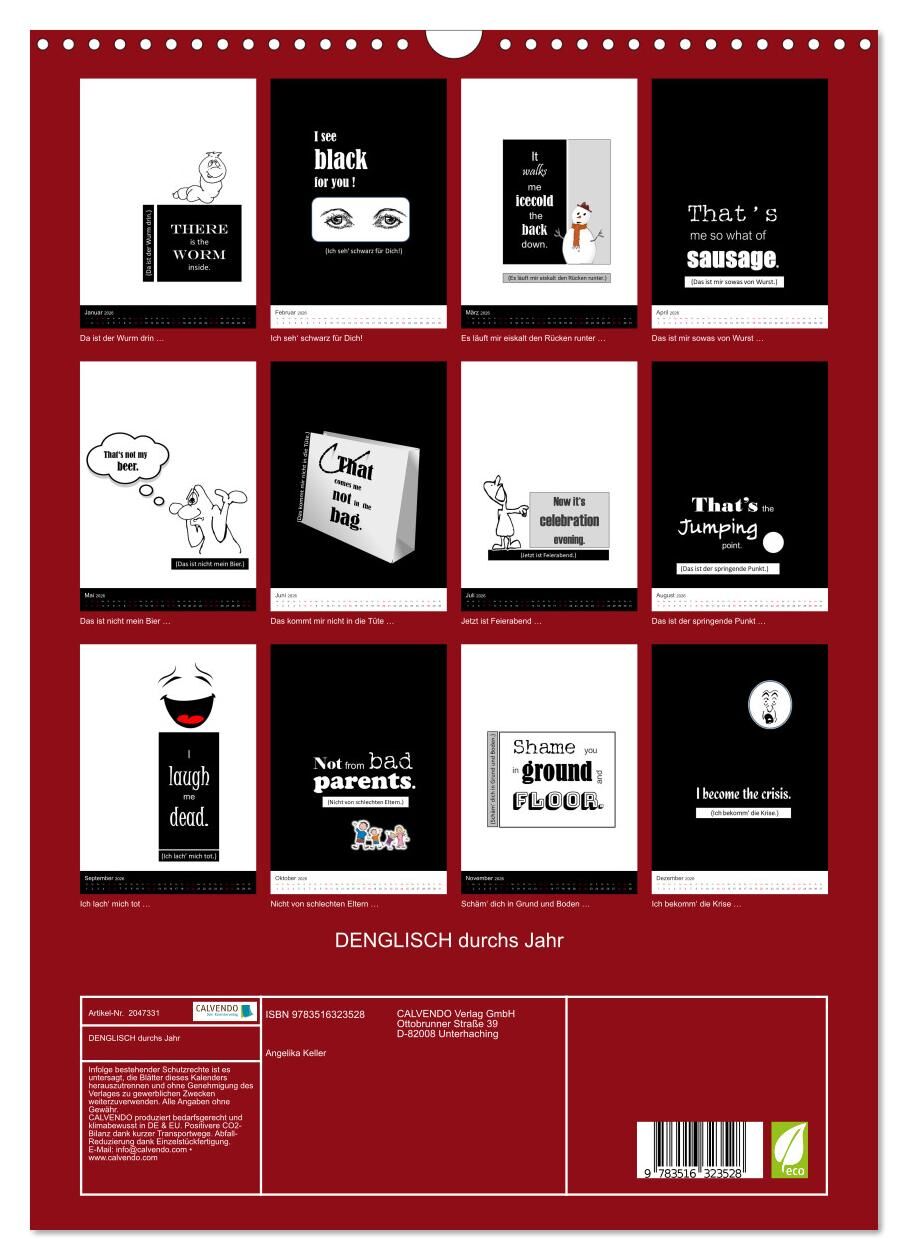 DENGLISCH durchs Jahr (Wandkalender 2026 DIN A3 hoch), CALVENDO Monatskalender