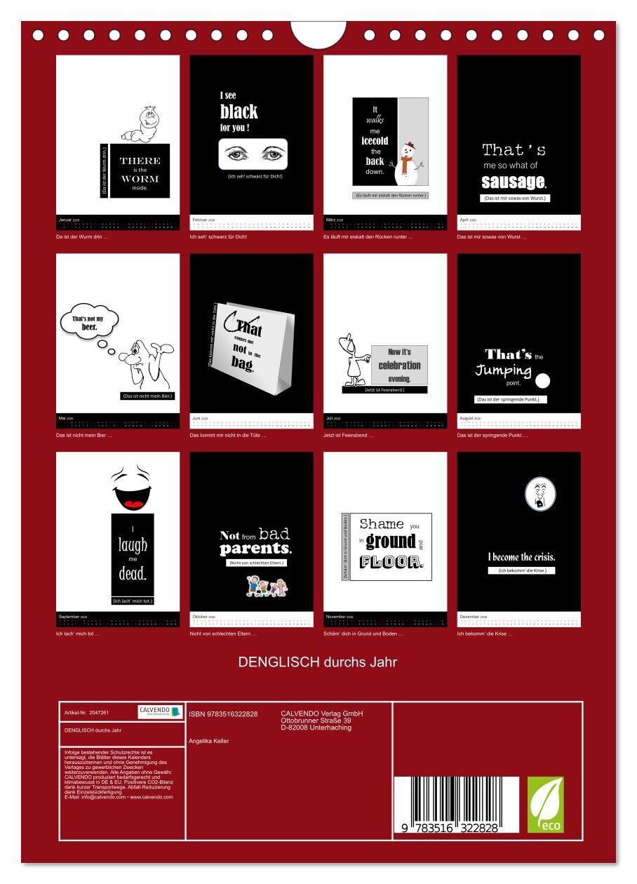 DENGLISCH durchs Jahr (Wandkalender 2026 DIN A4 hoch), CALVENDO Monatskalender