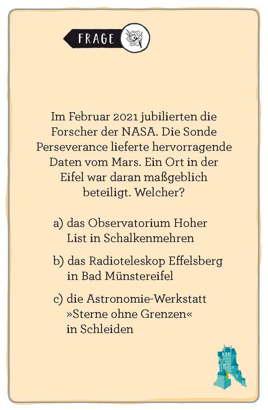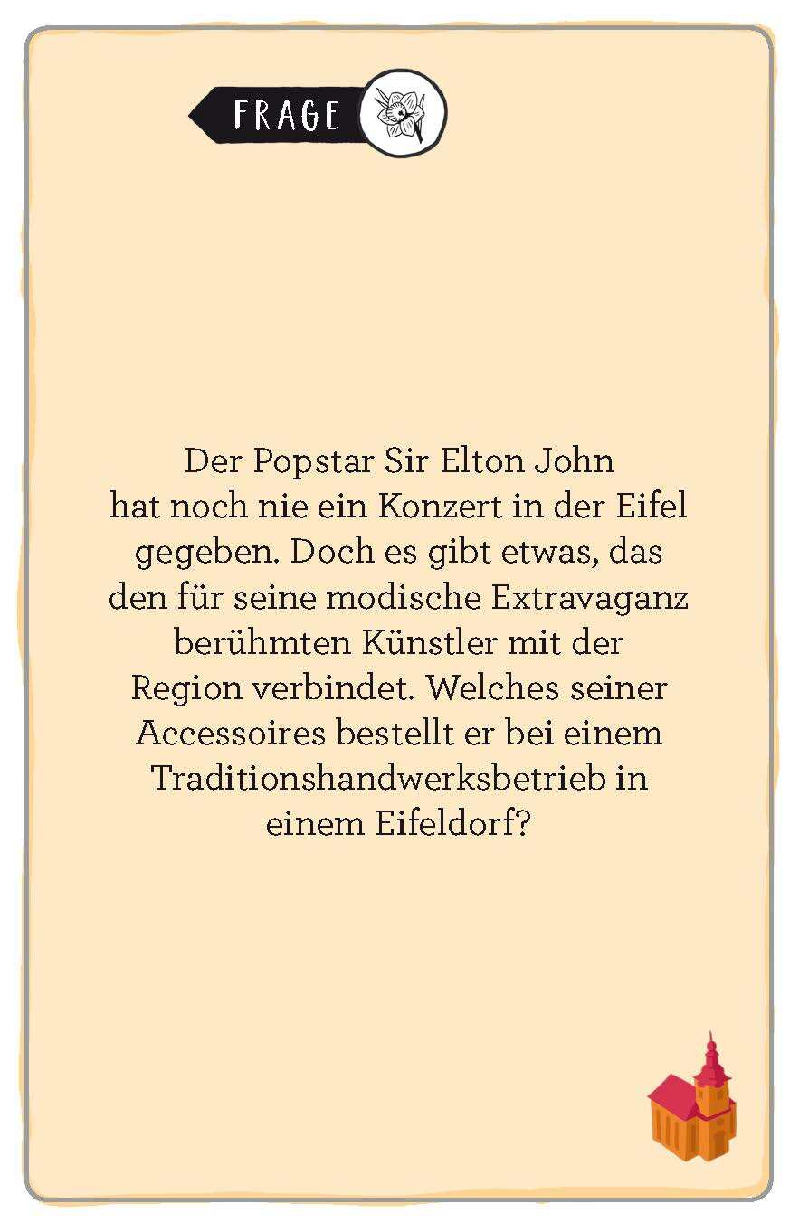 Wie gut kennst du die Eifel? Die Eifel, der Wilde Westen Deutschlands, ist ein Universum für sich. Römer und Kelten, Kaiser und Heilige hinterließen hier ihre Spuren und Geheimnisse, die sich zwischen Wohllebens Waldakademie, Tofutown, dem Schmetterlingsgarten...