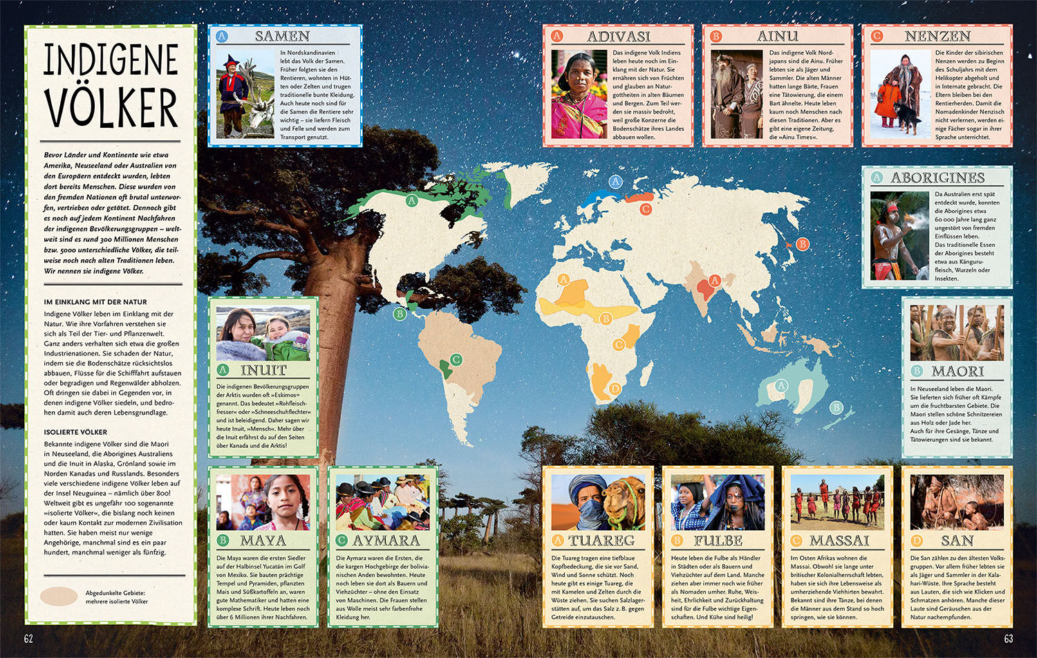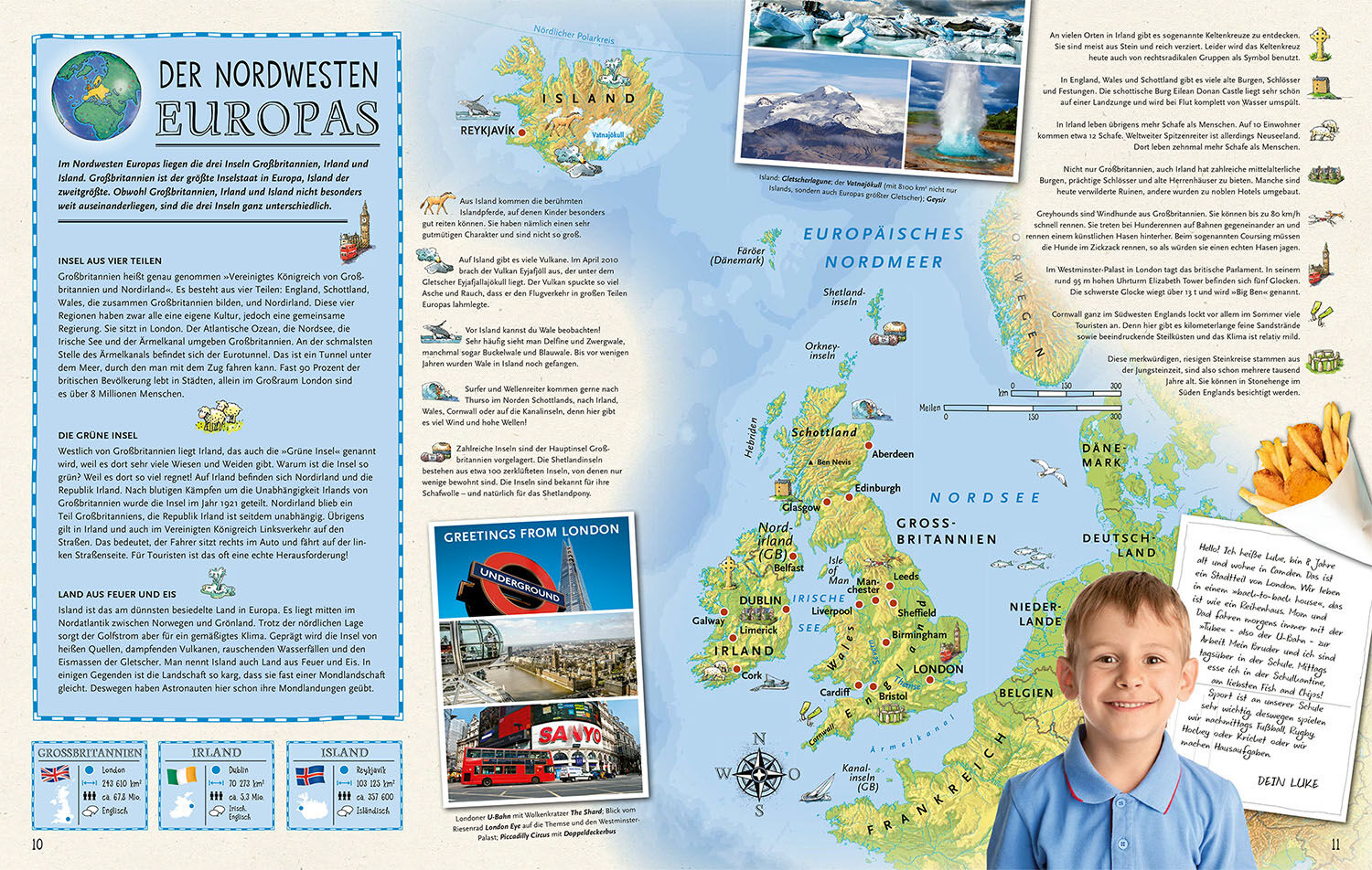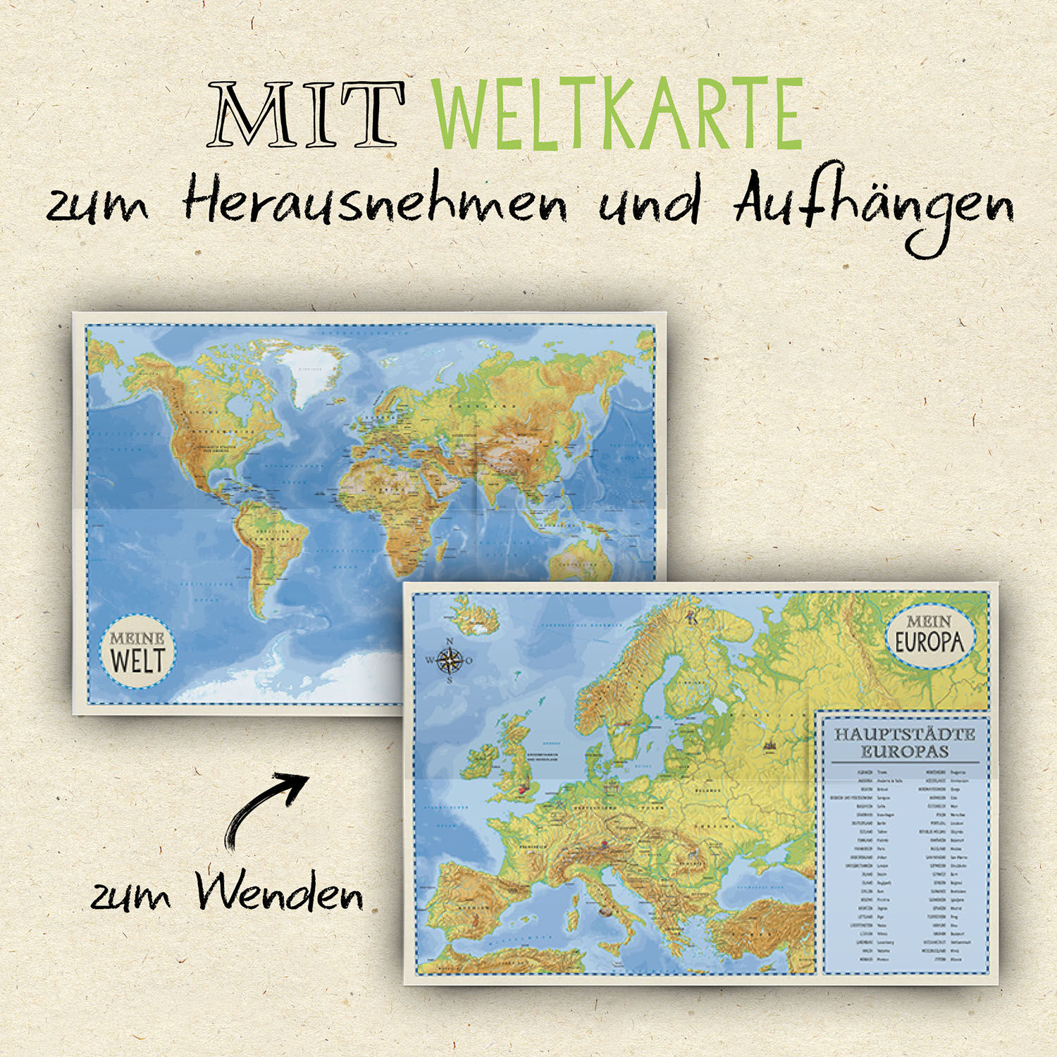 Rund um die Erde! Auf Karten werden die Kontinente und ihre Bewohner, Tiere und Pflanzen vorgestellt. Schwerpunktseiten beschäftigen sich mit Themen wie indigenen Völkern, dem Europarlament und Wetterphänomenen. Mit einer Weltkarte zum Aufhängen. Den Weltatlas...