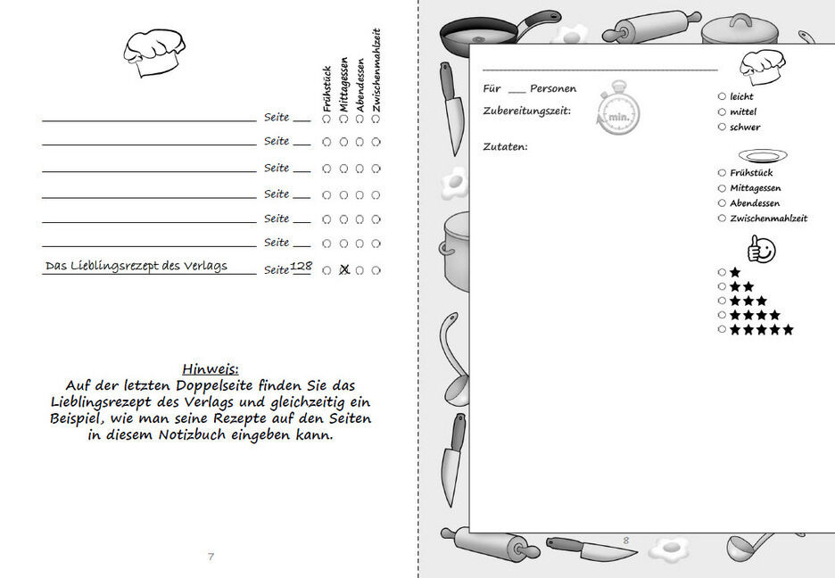 Meine Rezepte im Rezeptbuch zum Selberschreiben liebevoll aufbewahren. 130 Seiten bieten pro Doppelseite Platz für 60 Lieblingsrezepte mit Register. Ein schönes Notizbuch, welches man sich selbst oder einem lieben Menschen schenken kann. Suchen Sie ein schönes...
