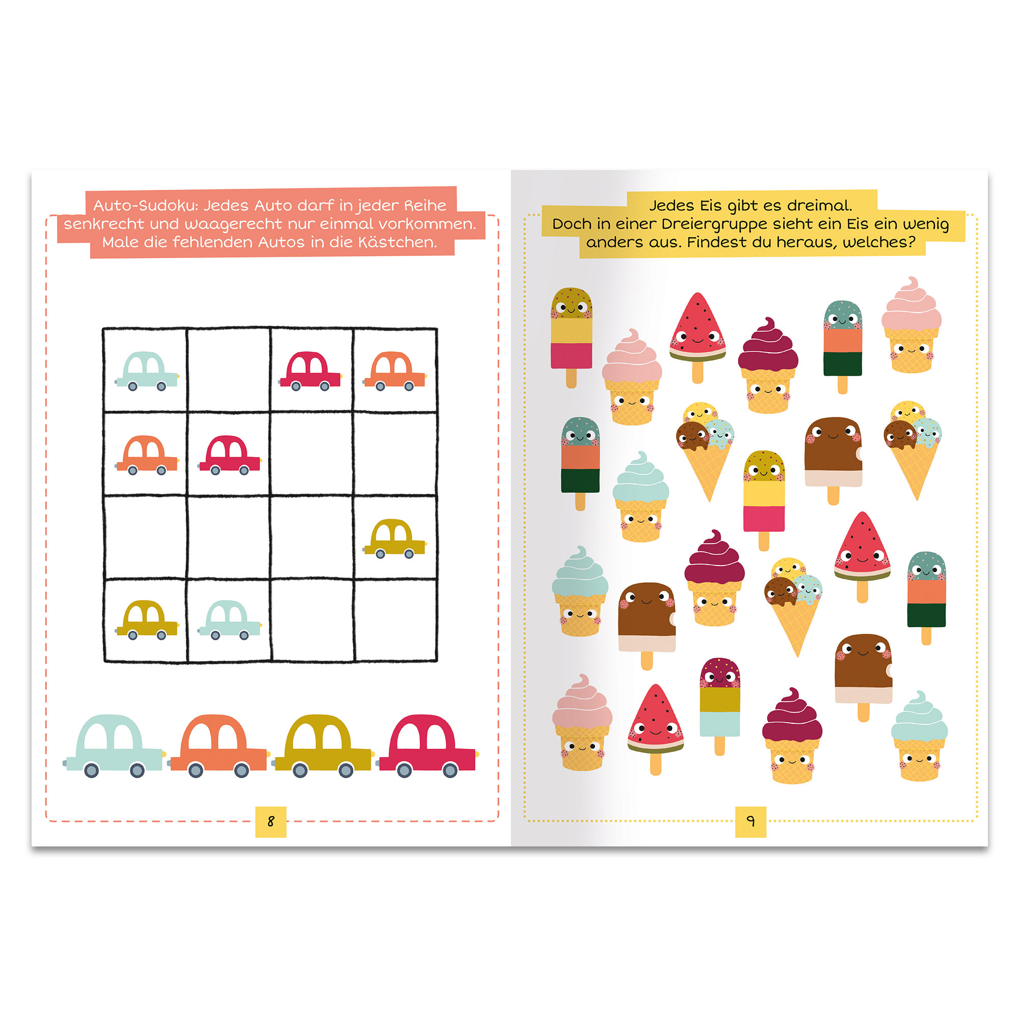 Stifte raus und losgerätselt! Auf langen Autofahrten kann es schon mal langweilig werden. Was gibt es da Besseres als knifflige Rätsel, lustige Suchspiele und kreative Aufgaben! Findest du den Weg durch das Labyrinth? Welche Eistüten sehen gleich aus? Welche V...