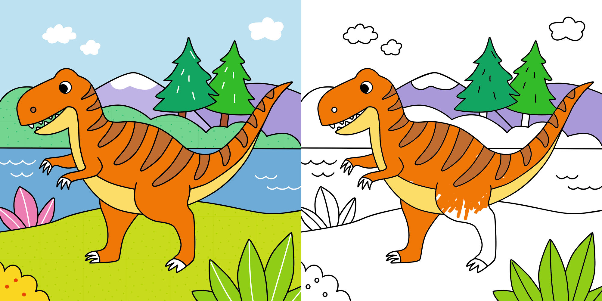 In diesem Malbuch finden kleinen Künstlerinnen und Künstler lustige Dinomotive mit Farbvorlagen. Wer möchte, malt alles so aus wie vorgegeben - oder ganz anders.