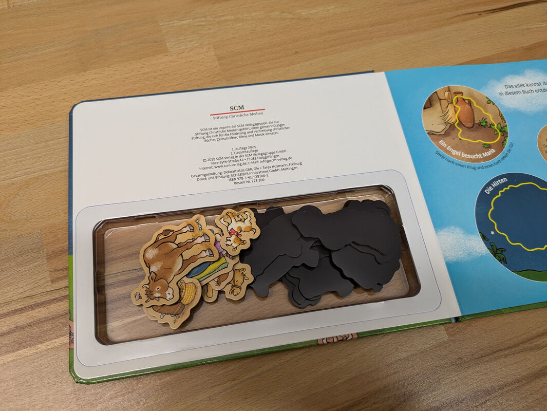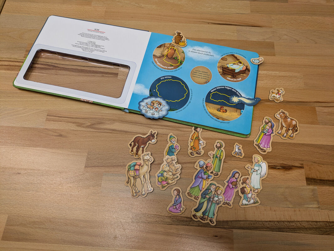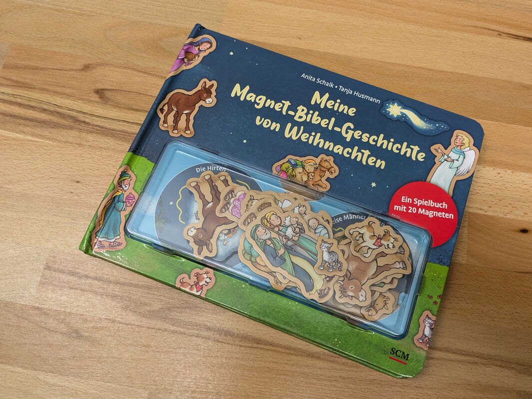 Vier Szenen aus der Weihnachtsgeschichte lassen sich auf diesen magnetischen Seiten entdecken: das Gespräch des Engels mit Maria, die Geburt Jesu im Stall, das Erlebnis der Hirten und der Besuch der Weisen. Mit 20 passenden Magnetfiguren kann man die Weihnacht...