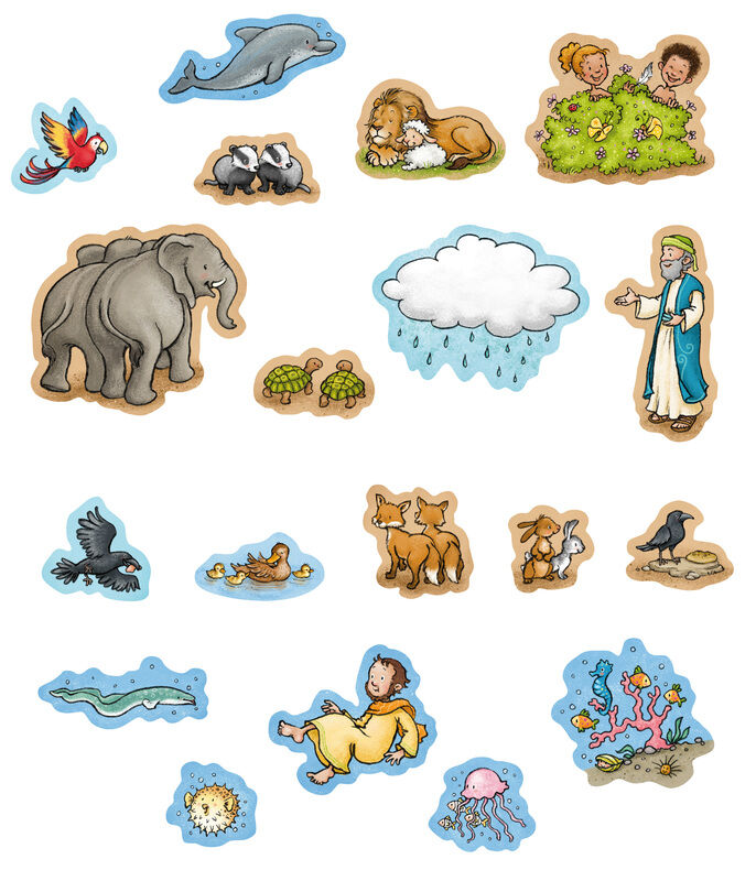 Vier tolle Bibelgeschichten lassen sich auf diesen magnetischen Seiten entdecken: die Schöpfung, Noahs Arche, Elia wird von Raben versorgt, Jona und der Wal. Mit den 20 passenden Magnetfiguren können die Erzählungen immer wieder neu gestaltet werden. Tiergesch...