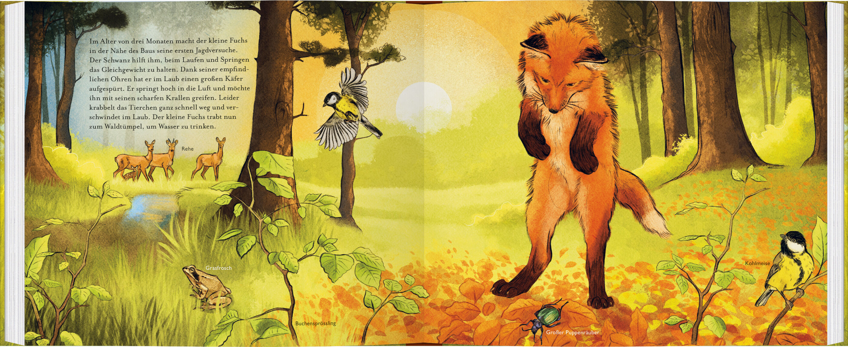 In diesem liebevoll illustrierten Sachbilderbuch begleiten wir einen Fuchs in seinem ersten Lebensjahr und lernen das beliebte heimische Wildtier genau kennen. In einem verborgenen Bau mitten im Wald erblickt ein kleiner Fuchs das Licht der Welt. Schon nach we...