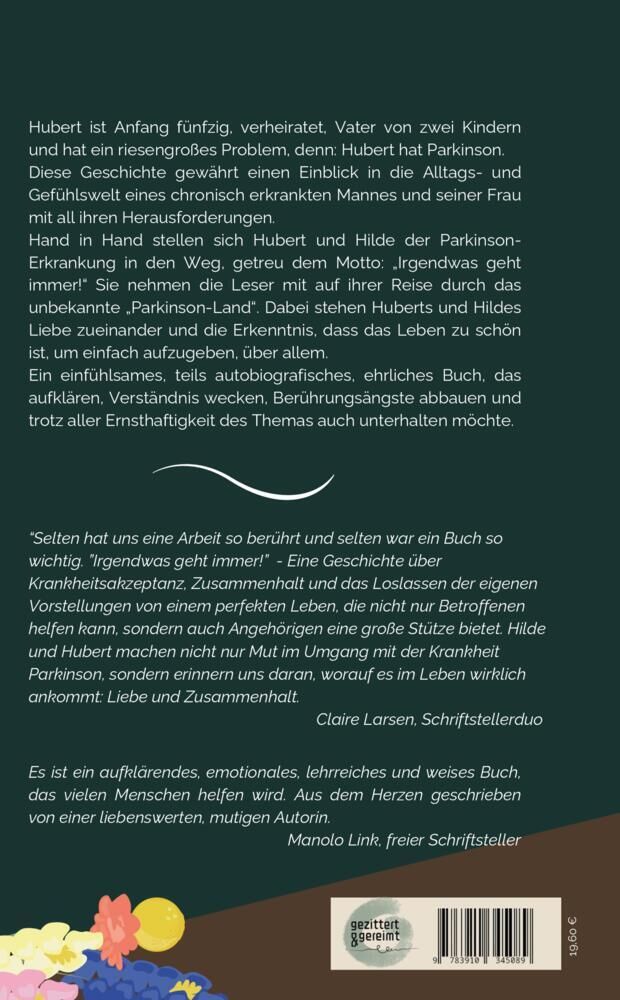 Hubert ist Anfang fünfzig, verheiratet, Vater von zwei Kindern und hat ein riesengroßes Problem, denn: Hubert hat Parkinson. Diese Geschichte gewährt einen Einblick in die Alltags- und Gefühlswelt eines chronisch erkranken Mannes und seiner Frau mit all ihren ...