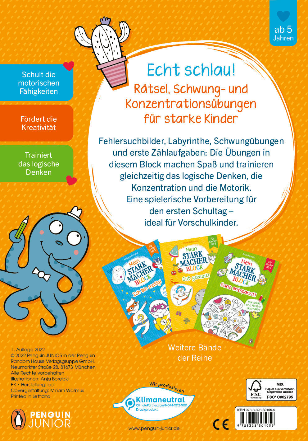 Echt schlau! Fehlersuchbilder, Labyrinthe, Schwungübungen und erste Zählaufgaben: Die Übungen in diesem Block machen Spaß und trainieren gleichzeitig das logische Denken, die Konzentration und die Motorik. Eine spielerische Vorbereitung auf den ersten Schultag...