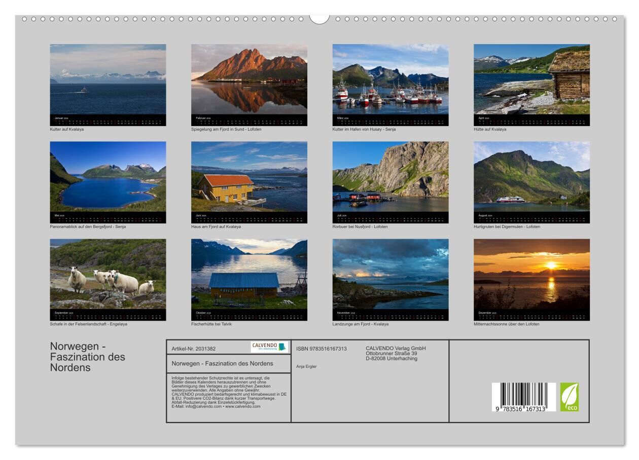 Norwegen - das Land der hohen Berge und der tiefen Fjorde zeigt in diesem Kalender seine faszinierende Schönheit nördlich des Polarkreises. Reisen Sie z.B. mit auf die Lofoten, erleben Sie die Schönheit der Insel Senja oder entdecken Sie die Küste der Insel Kv...